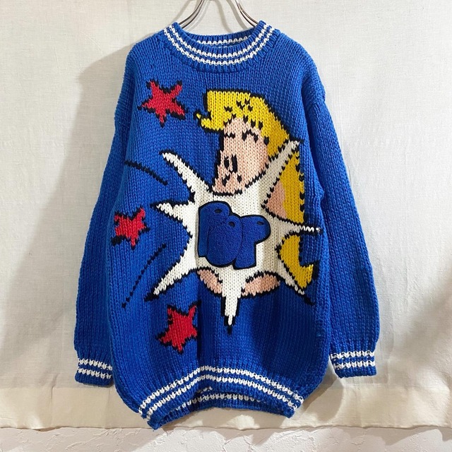 80's ドルマンスリーブ リボン ハンドニット セーター SMA2
