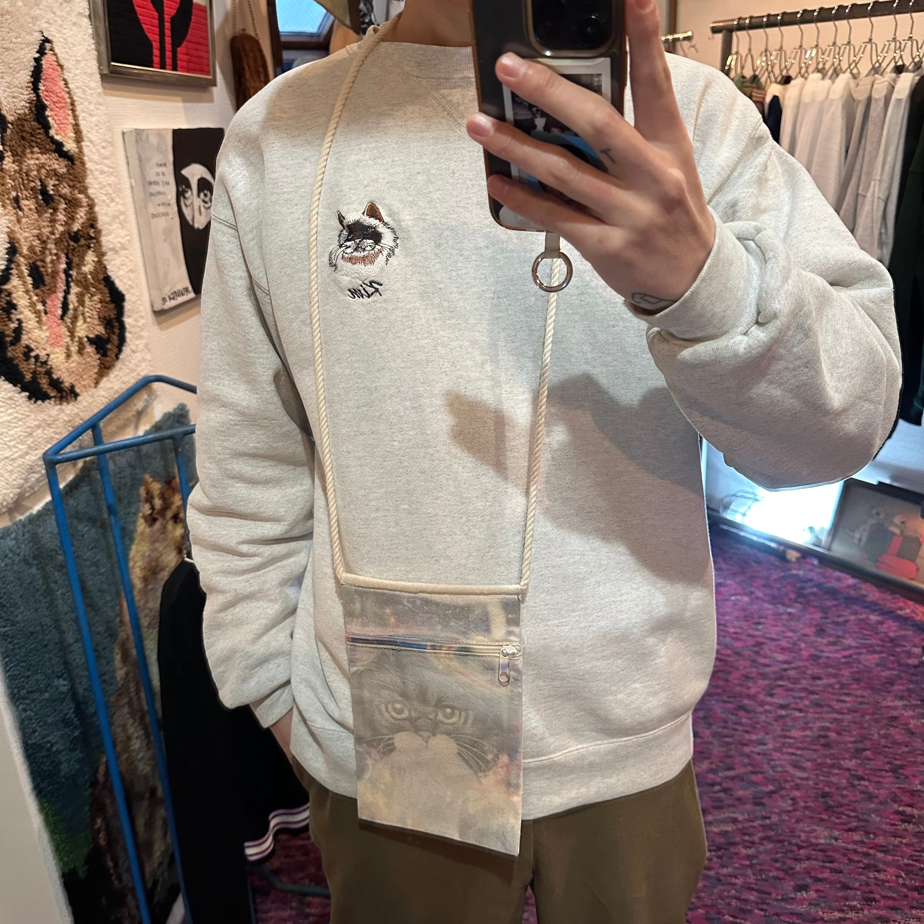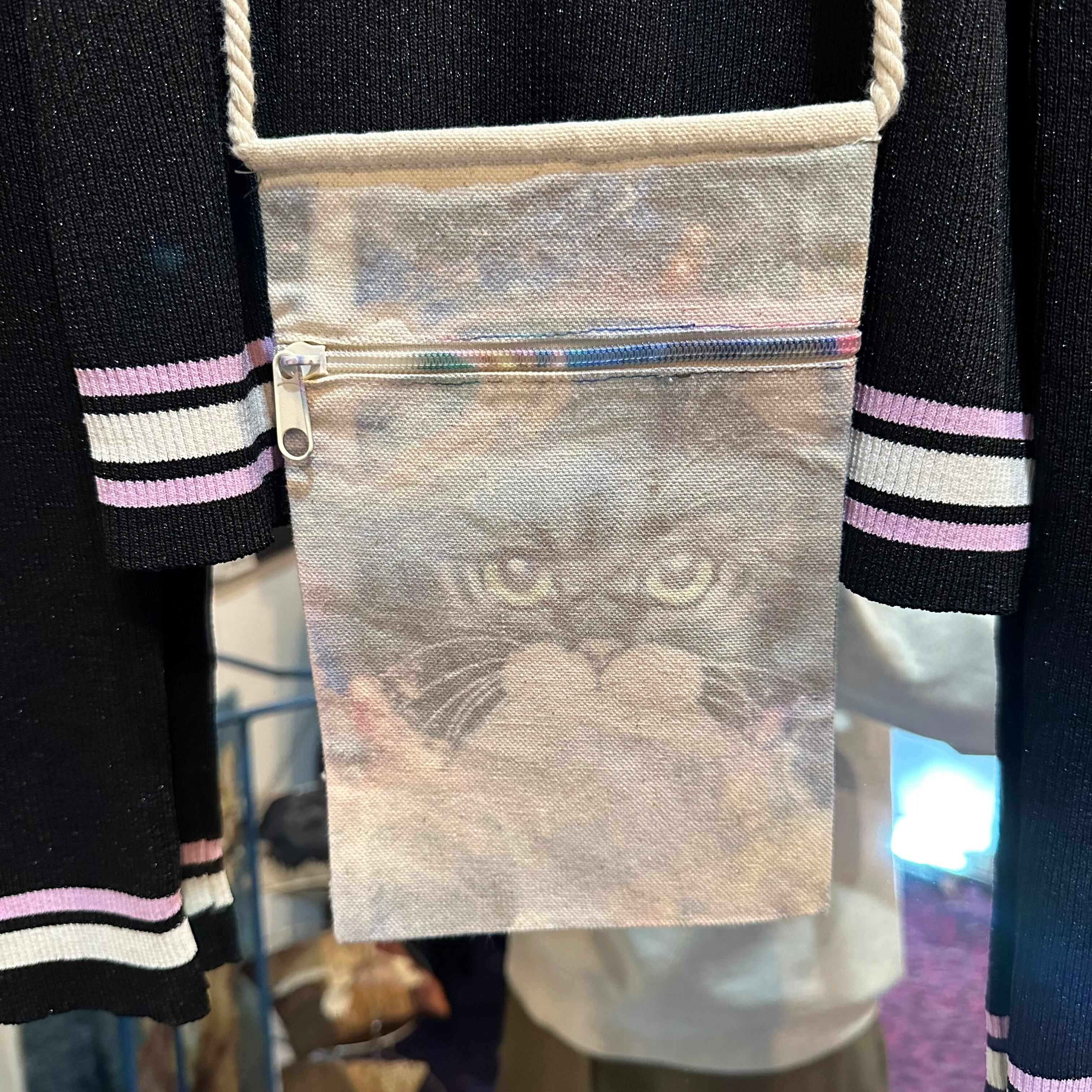 パステル調のネコちゃんがプリントされたショルダーポーチです。