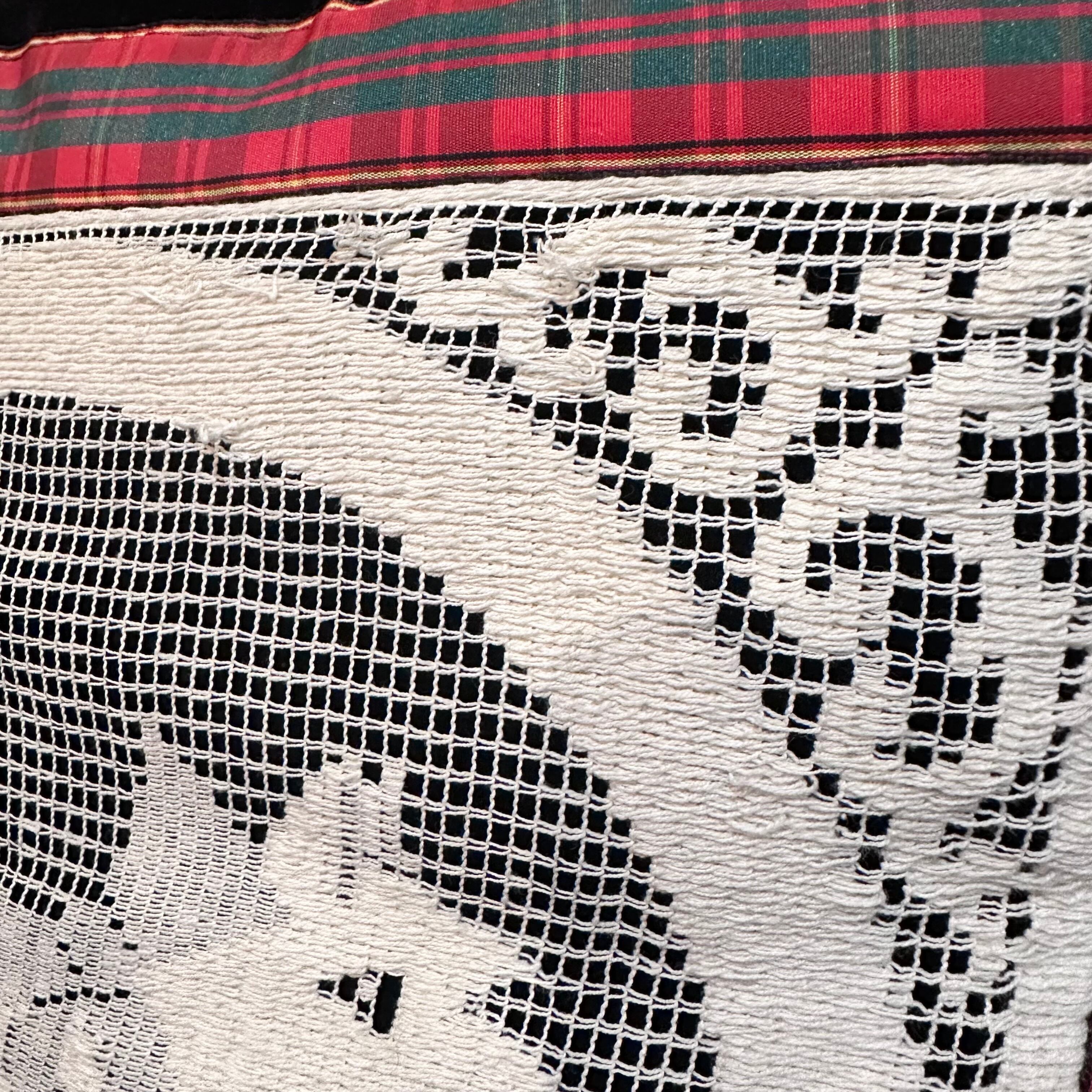レースと赤緑のチェックの枠以外はベルベット素材なのもお上品でナイスです。