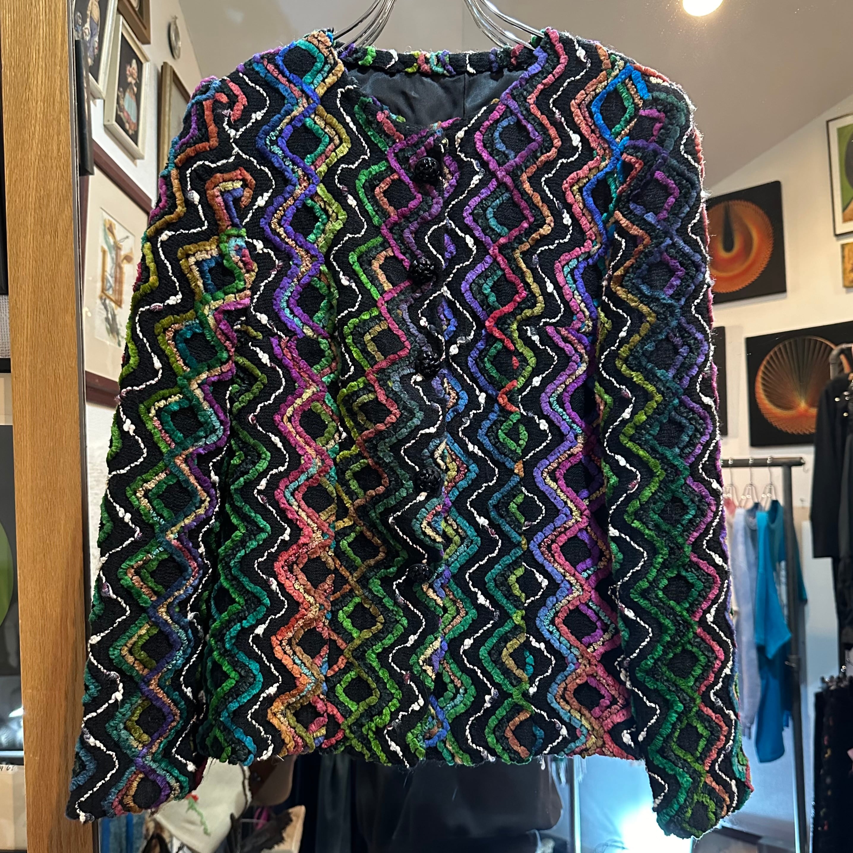 サイケデリックな配色とシェニール織りみたいなうねうねが可愛いセットアップです!