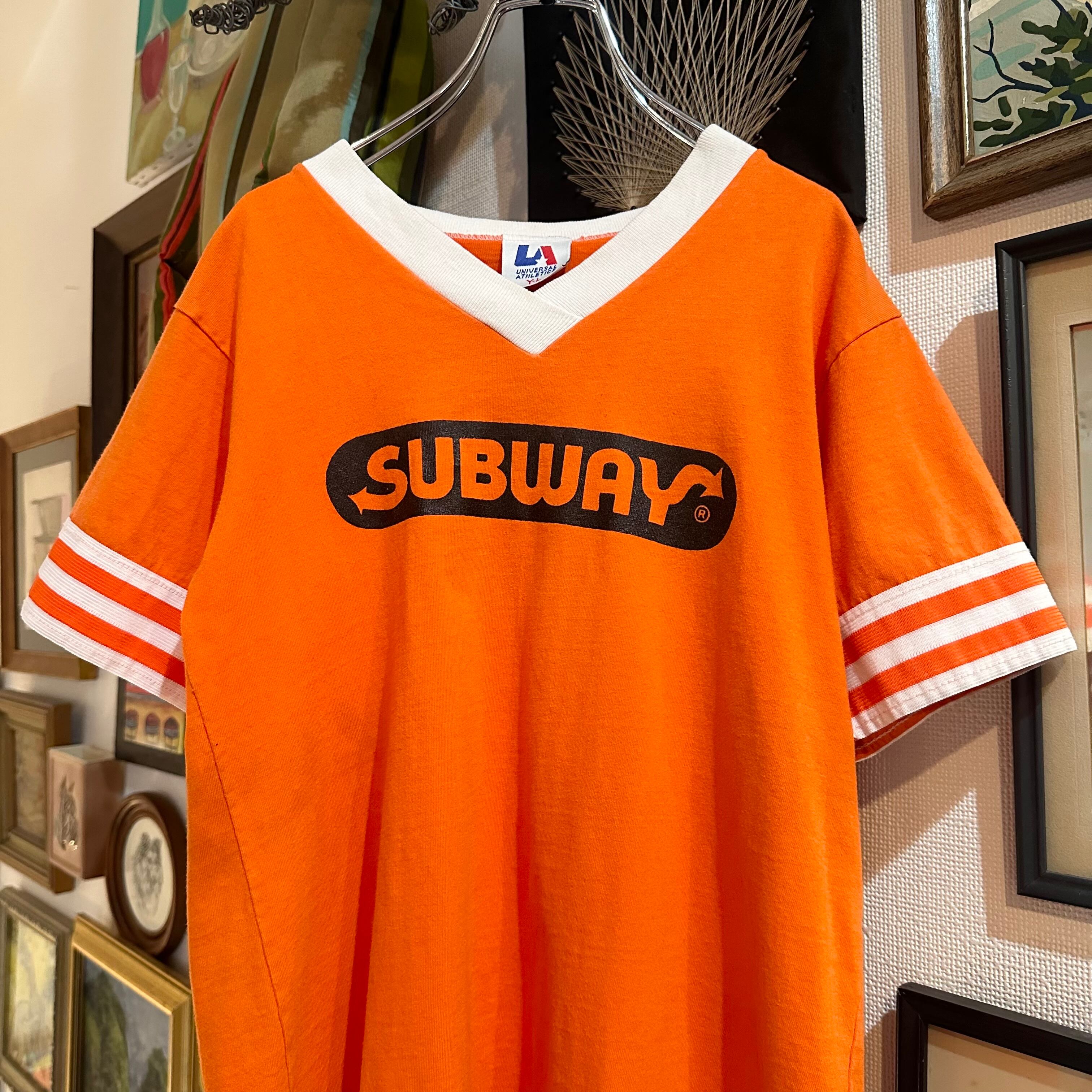 SUBWAYなのにオレンジで袖に入ったラインも最高なVネックTシャツです!