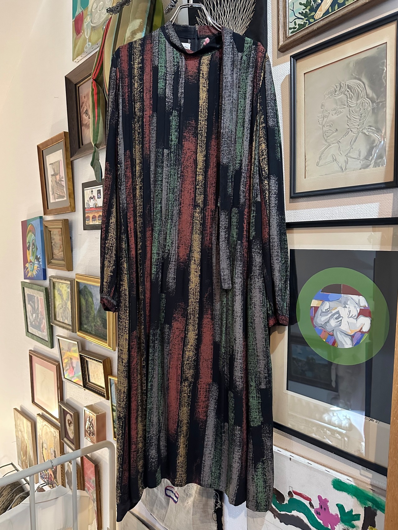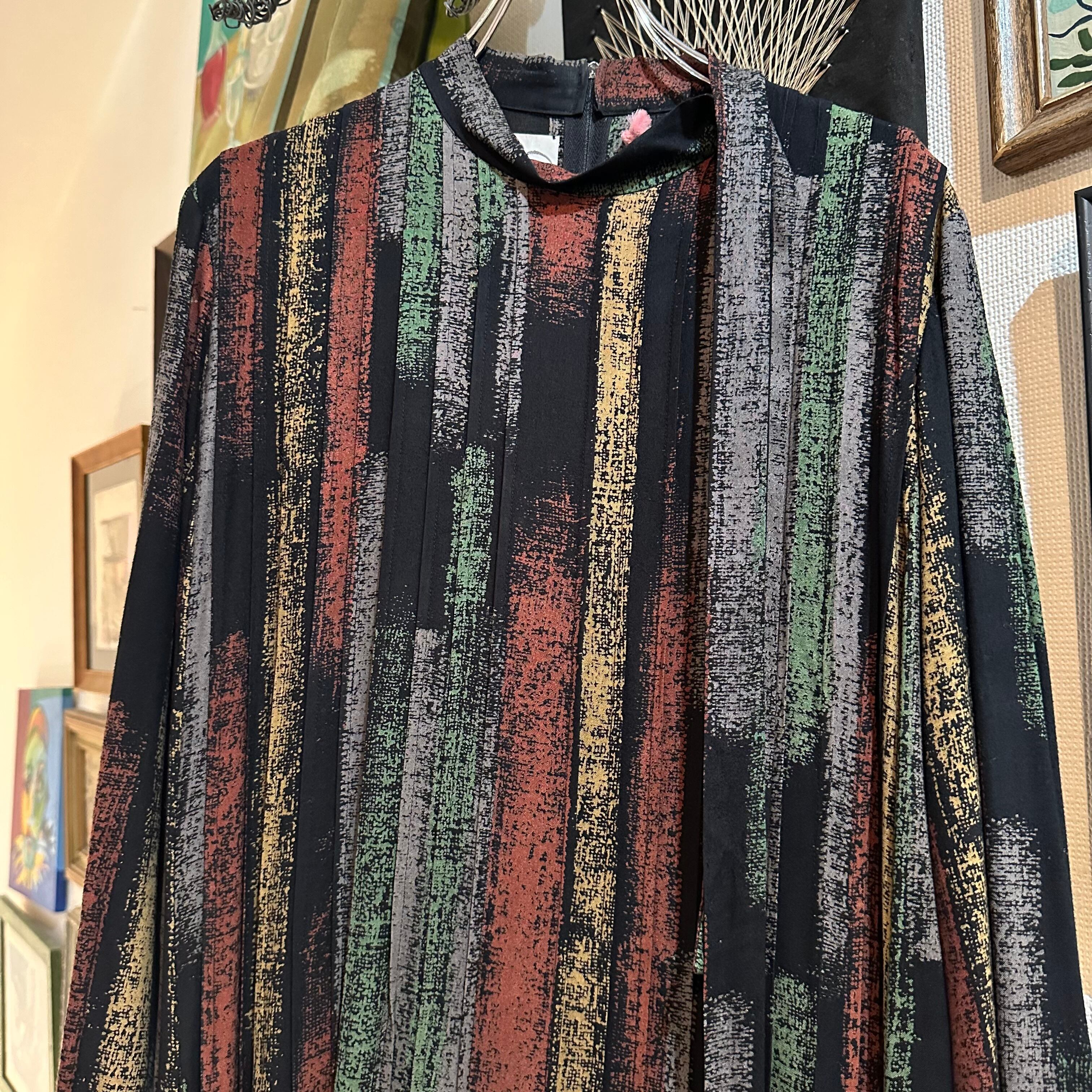 ノイズっぽく入った柄と正面のプリーツが美しいヴィンテージワンピースです!