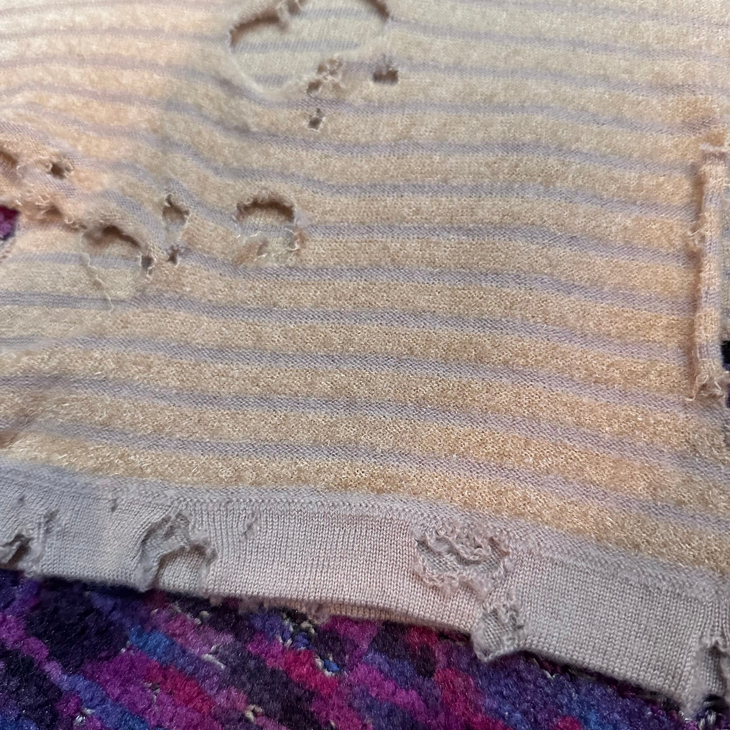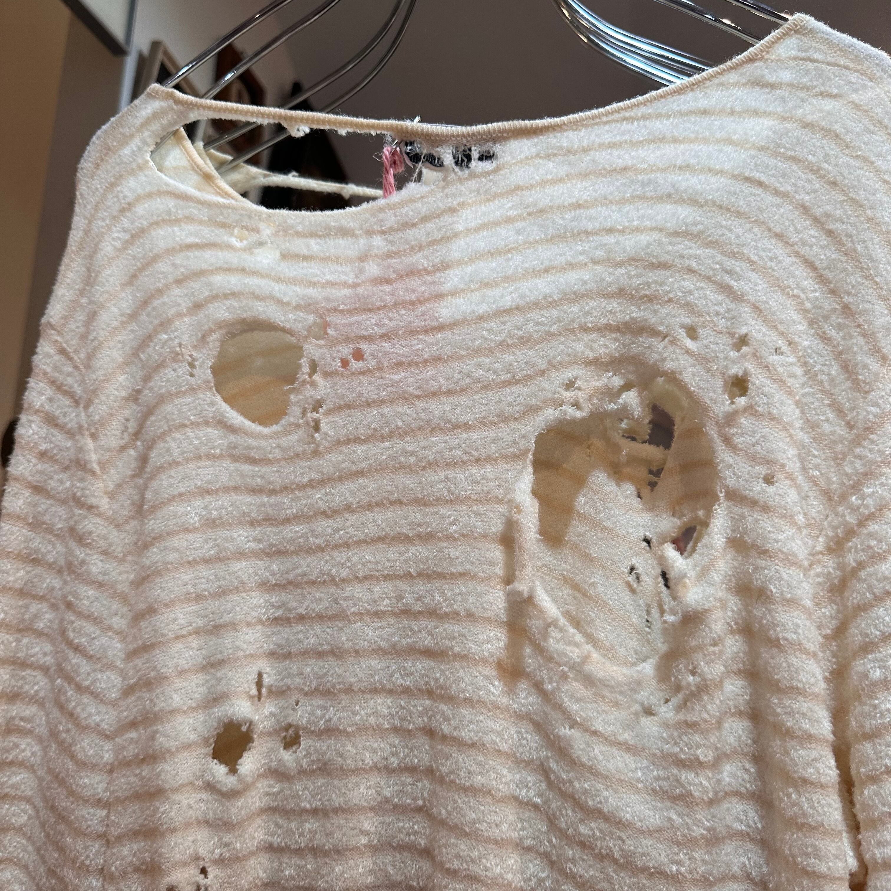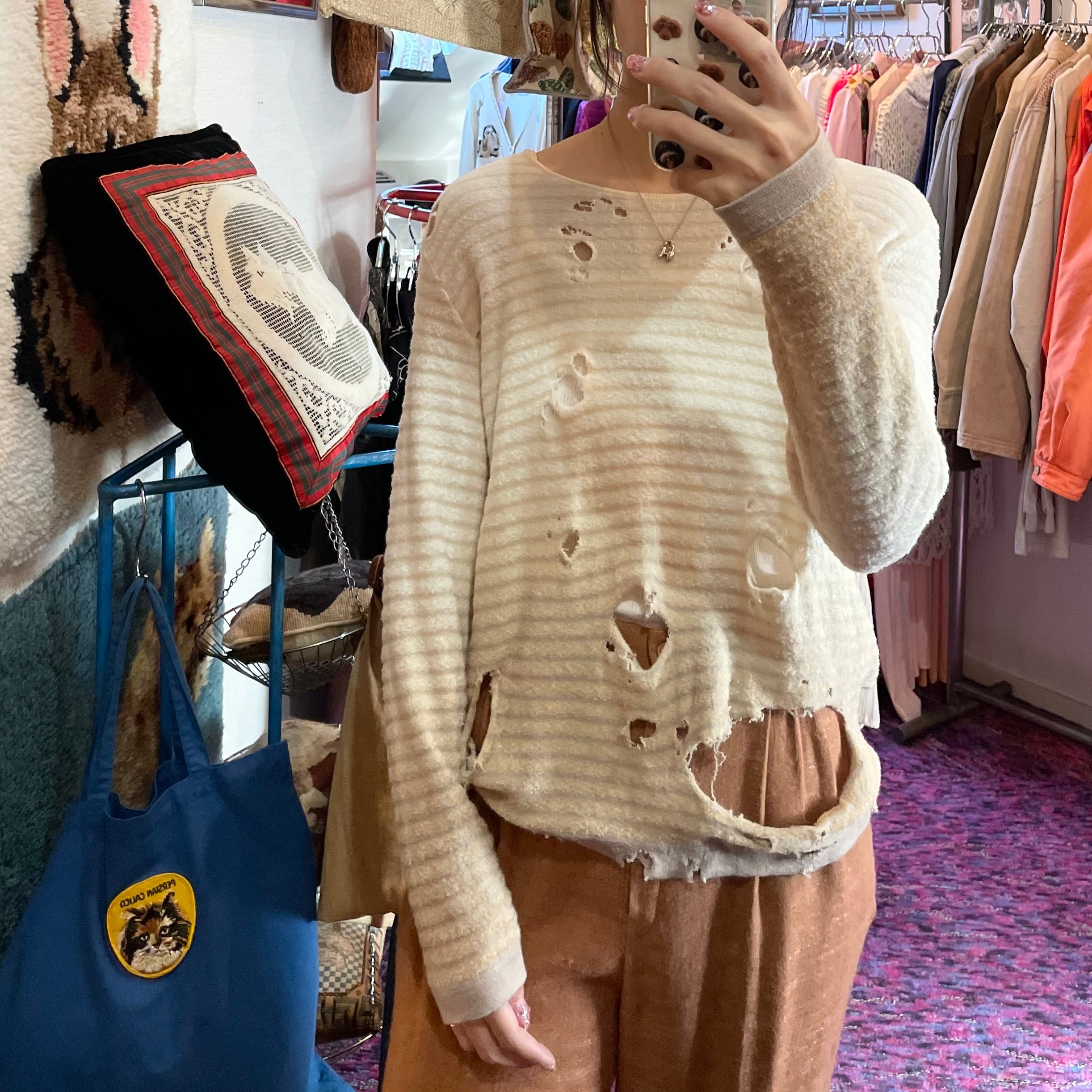グラデーションと絶妙なダメージが最高なパイルっぽい素材感のニットです!