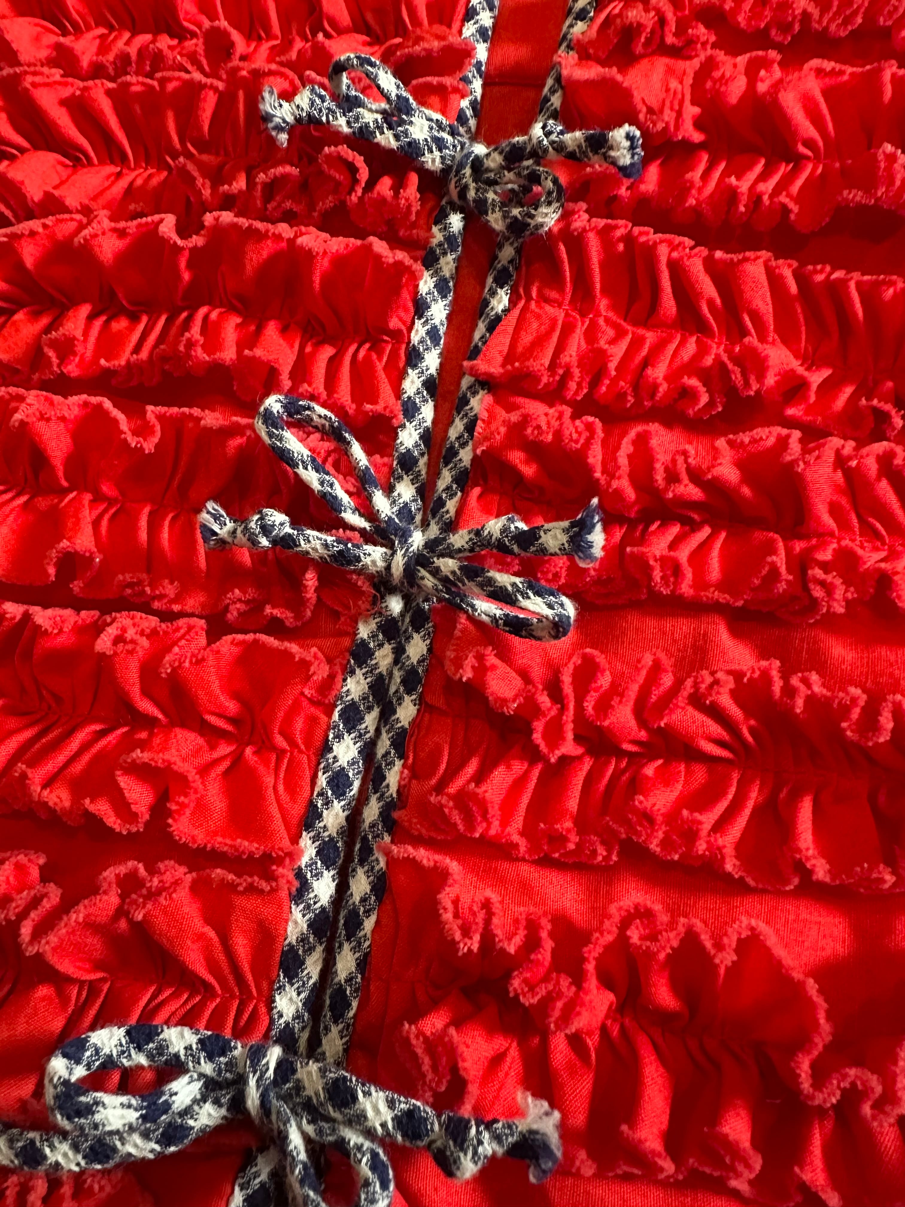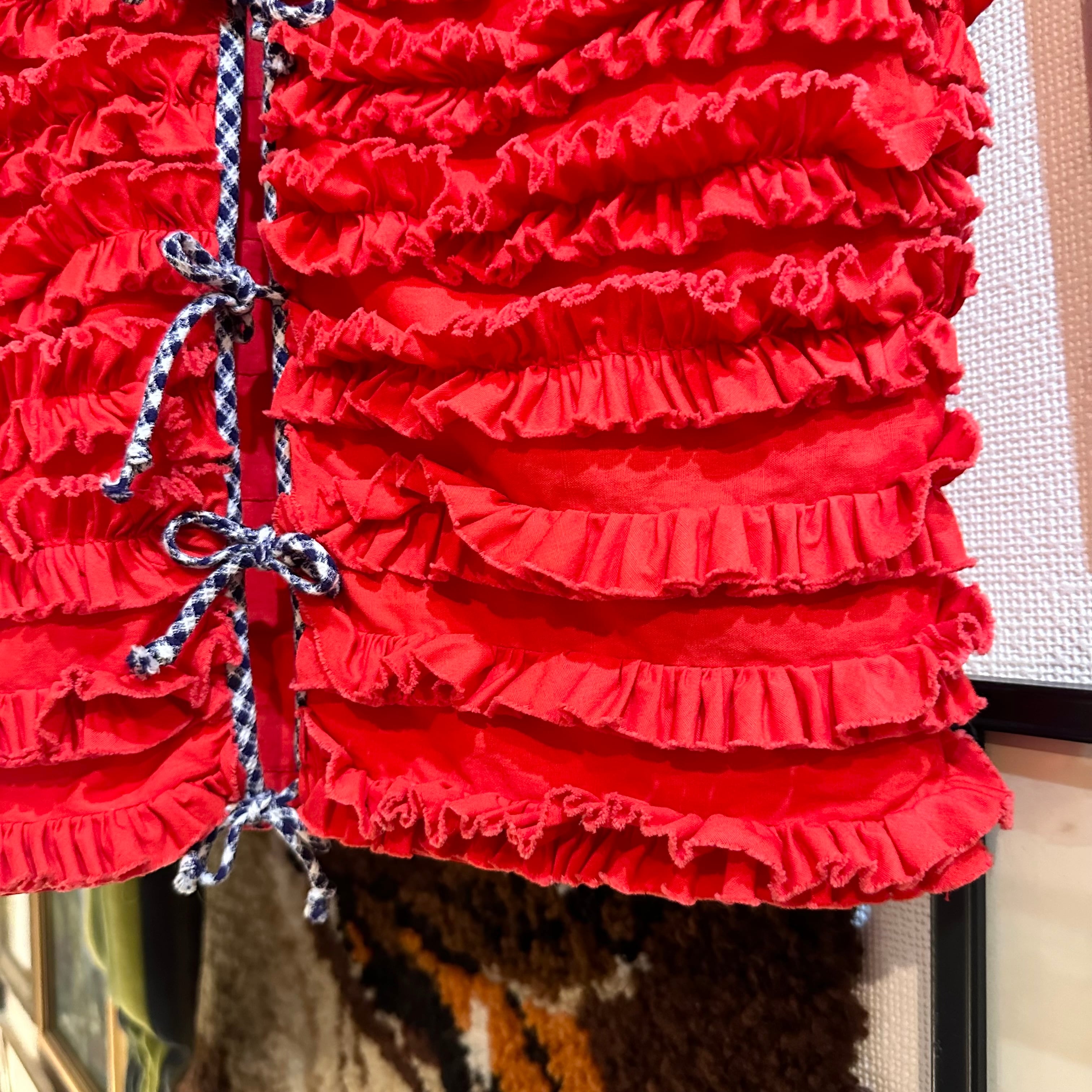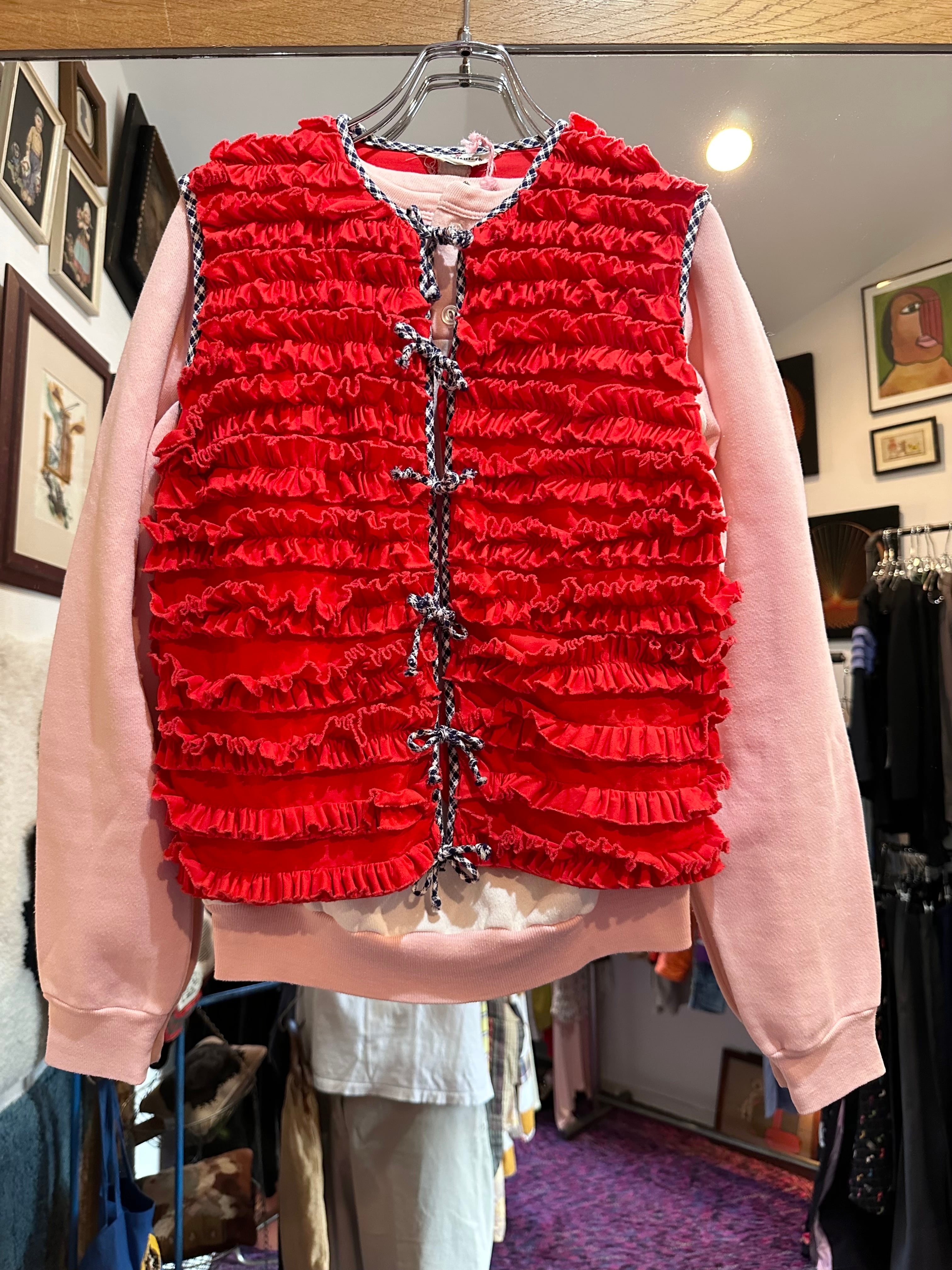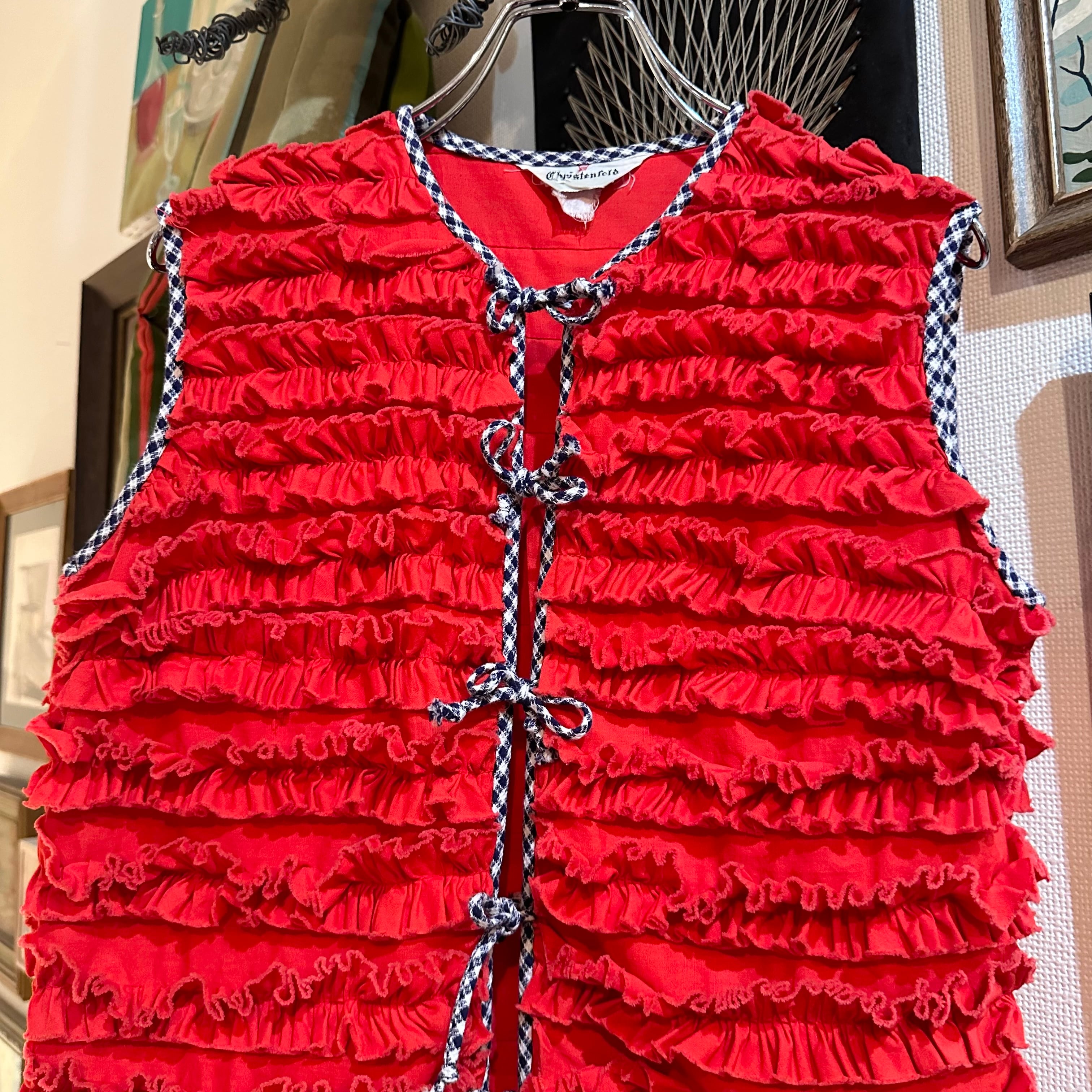 紐ボタンと盛り盛りのフリルが可愛い70's ベストです!