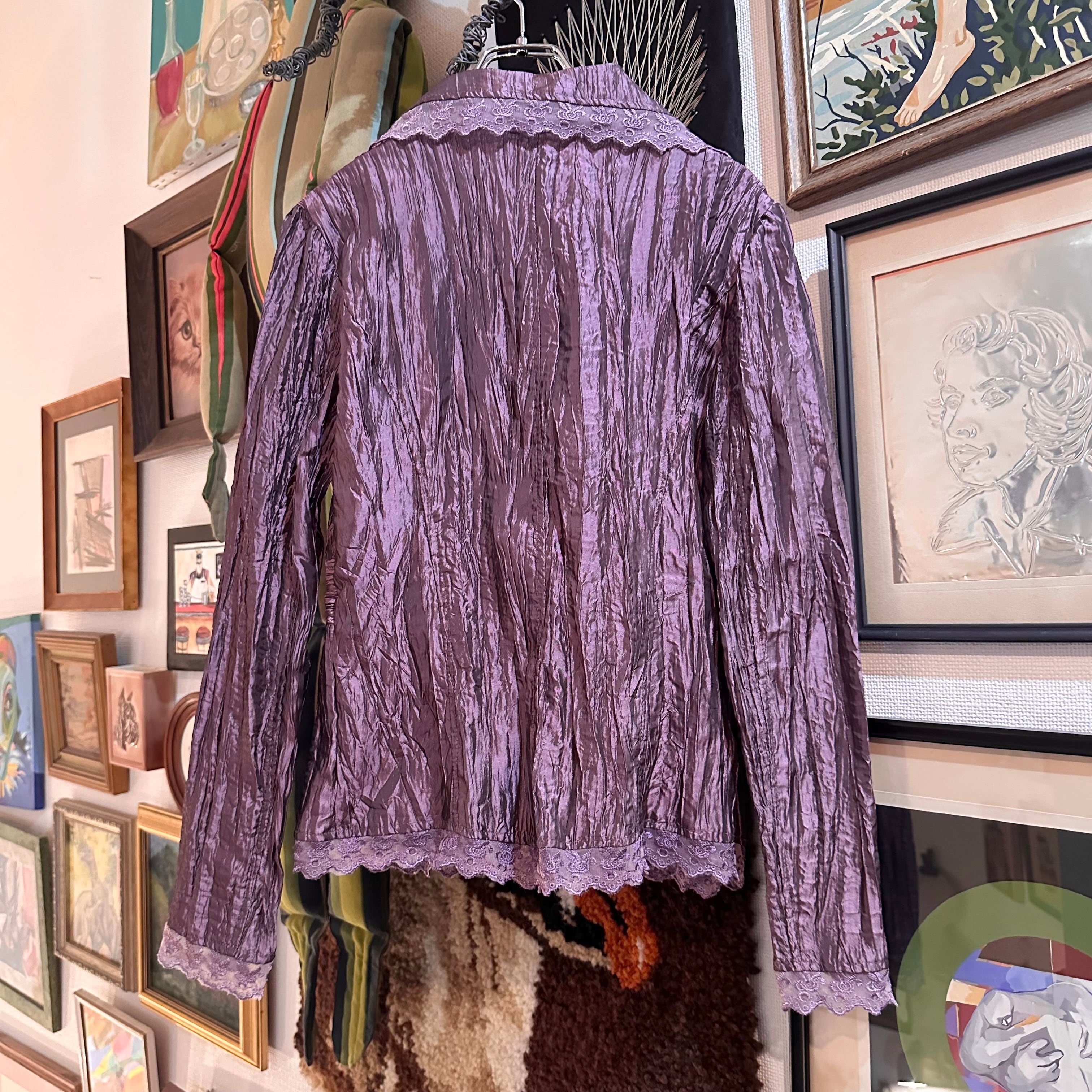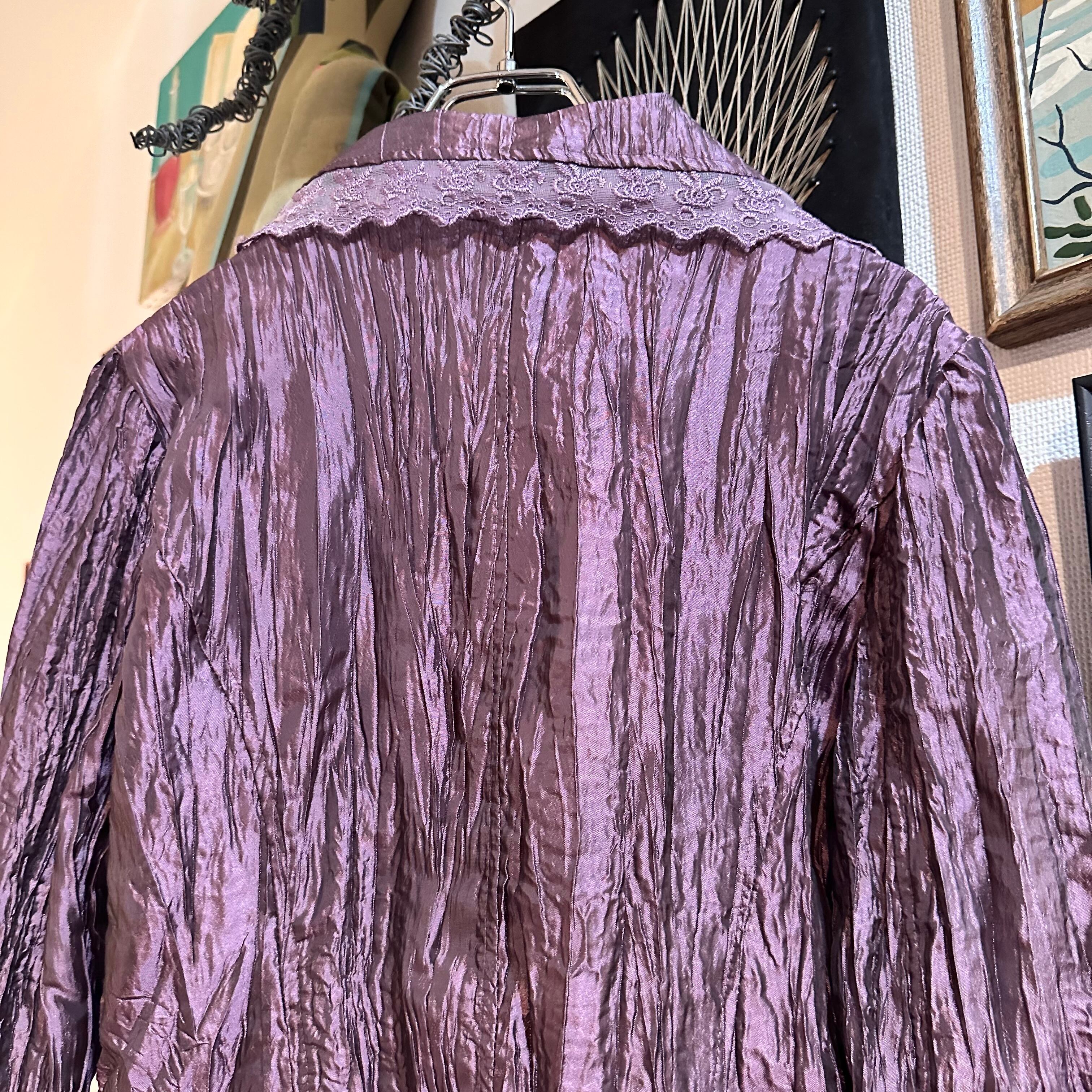 美しいシワ加工と玉虫色の様な紫のカラーリングが可愛いジャケットです!