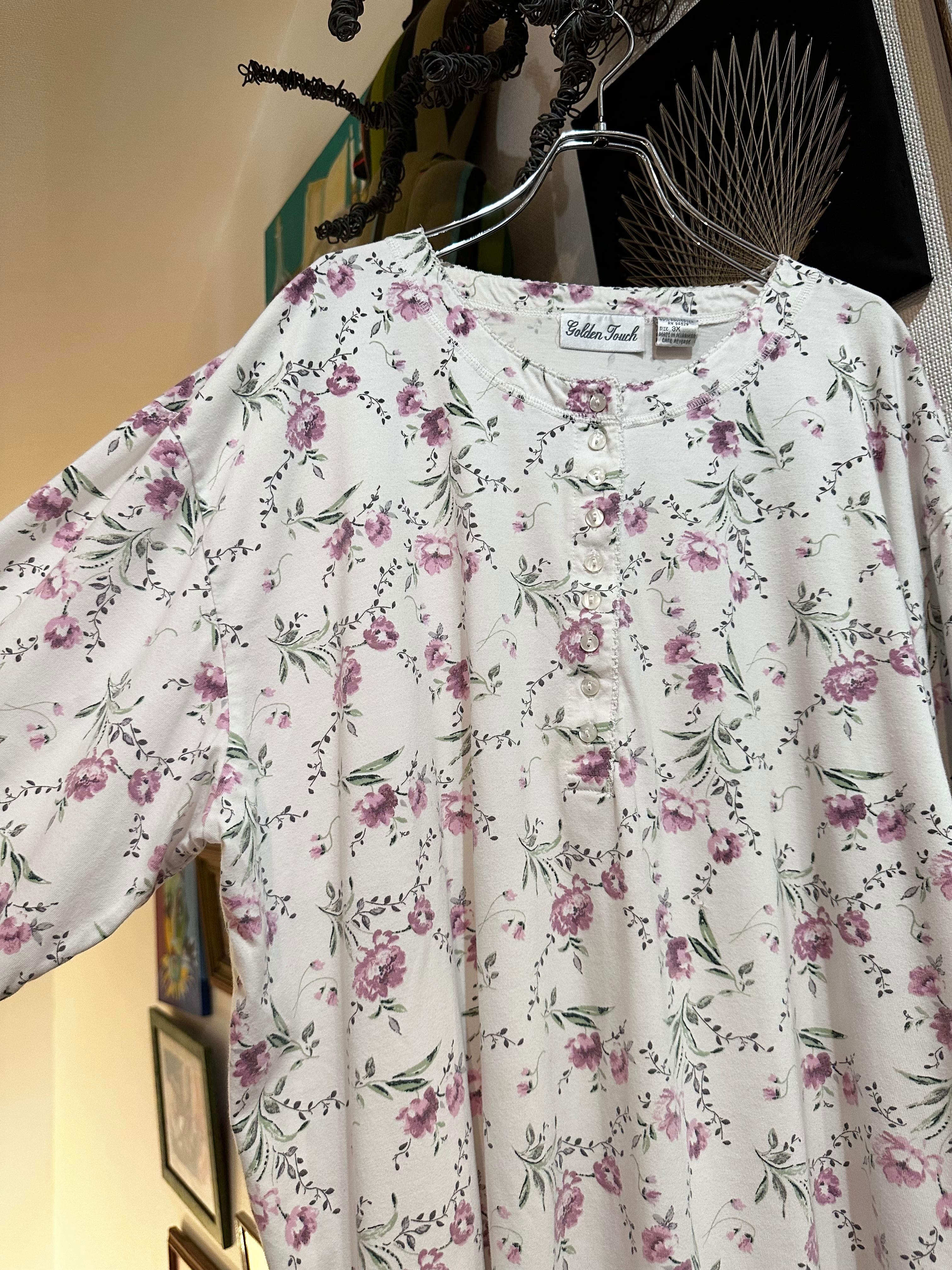 90's 花柄×ボタニカル ヘンリーネックTシャツ