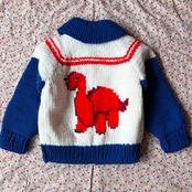 背中に恐竜ドーンのスペシャルキッズカウチンセーターです!
