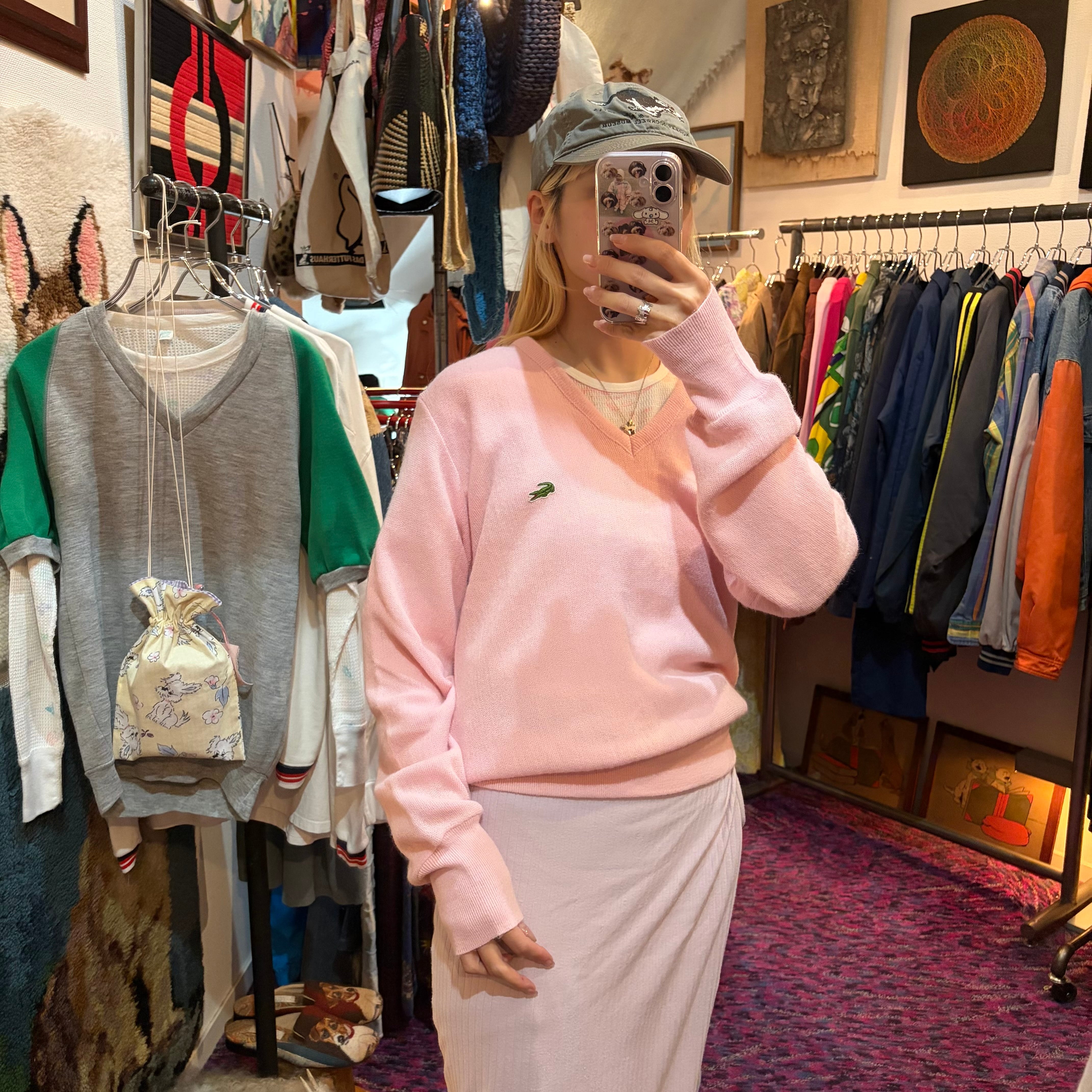 80's ラコステ Vネック アクリルセーター