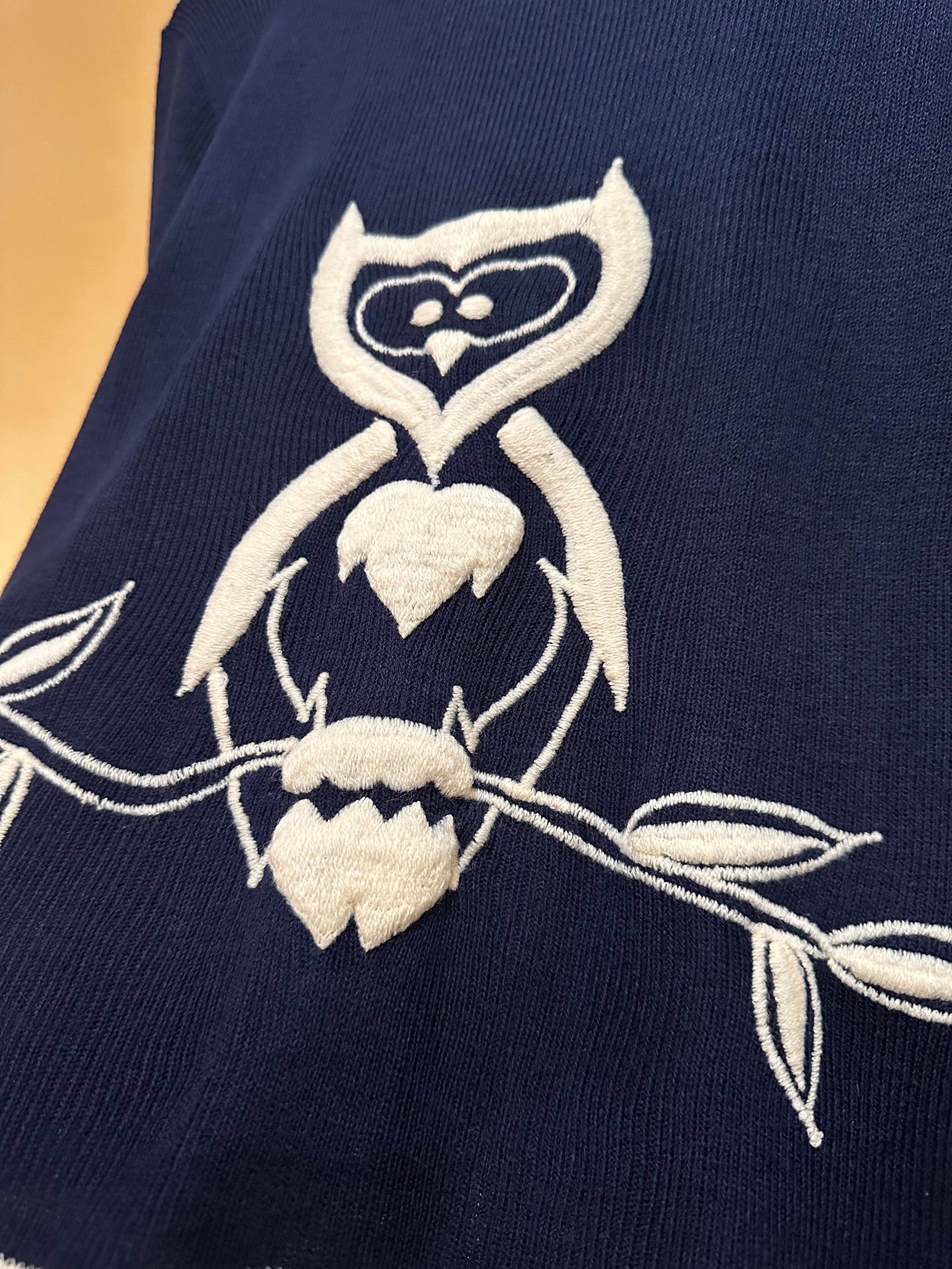 フウロウの刺繍が施されたむちゃんこ可愛いニットです。