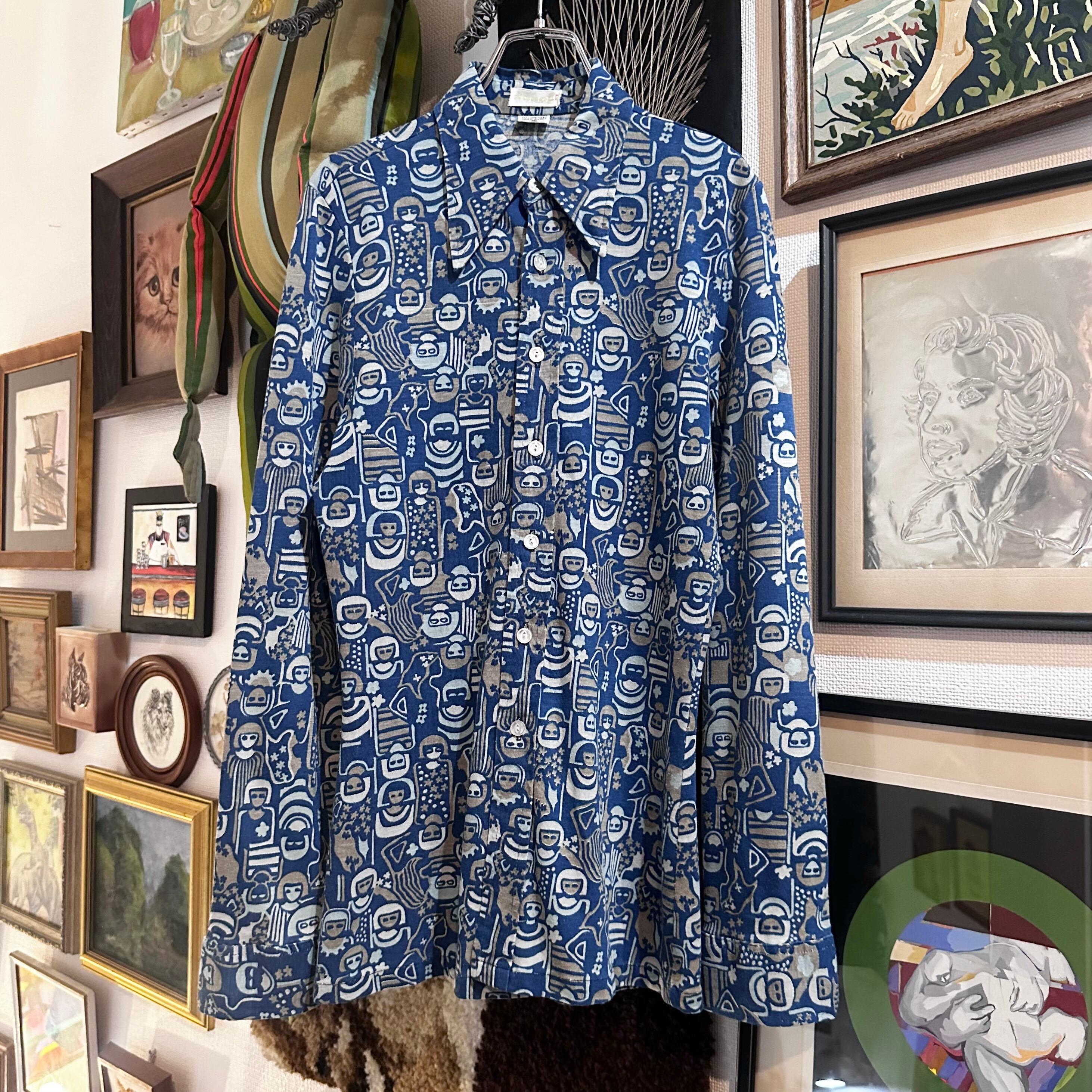 草間彌生っぽい人の総柄が可愛い70'sシャツです!