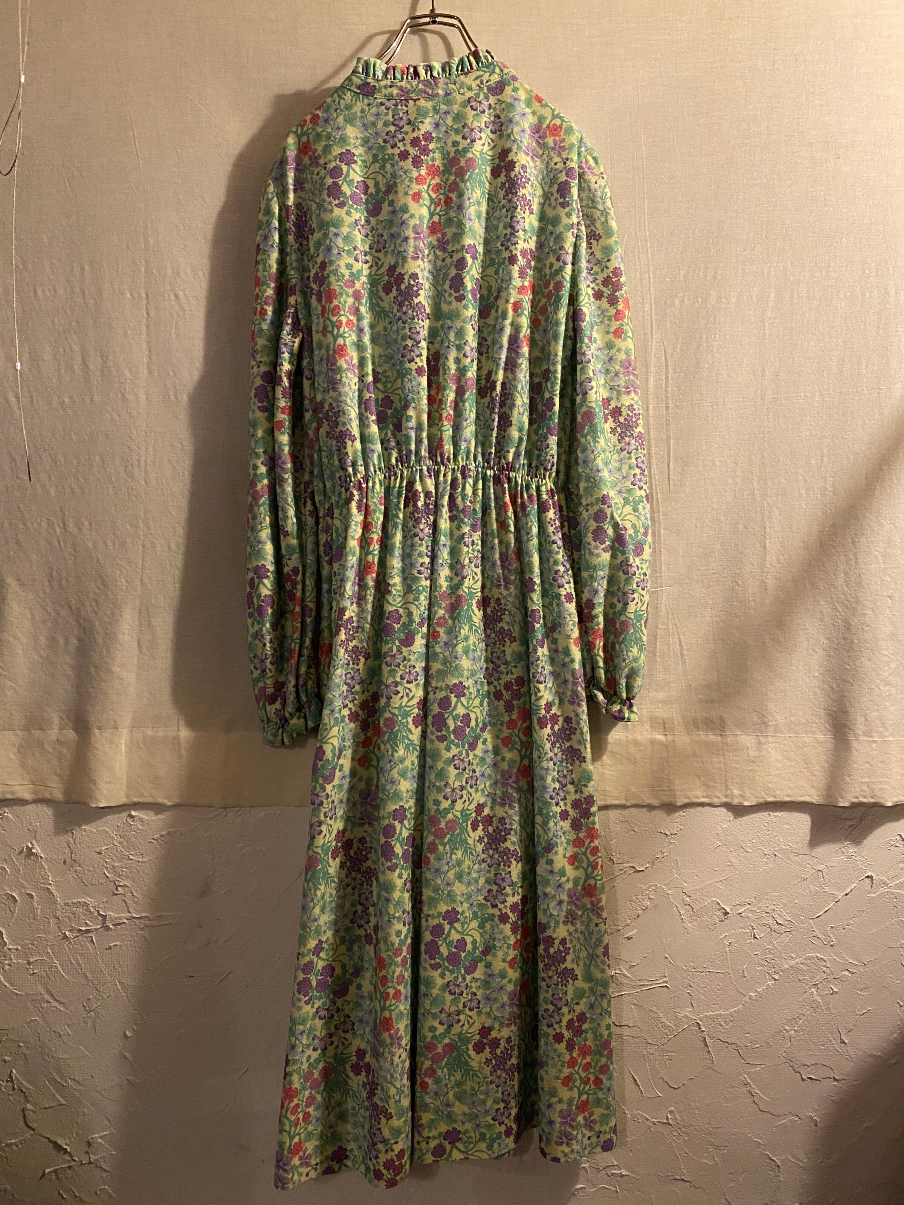 ベースカラーが綺麗なグリーンの花柄ワンピです。