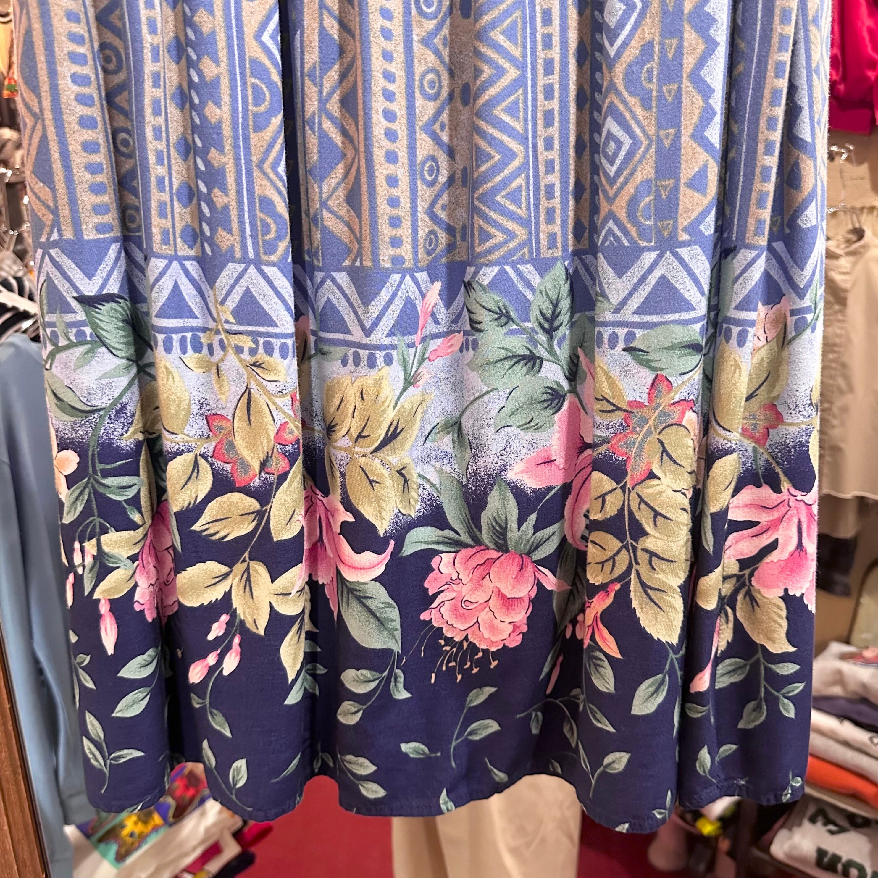 90's 幾何学柄×花柄 レーヨンスカート ⭐︎21