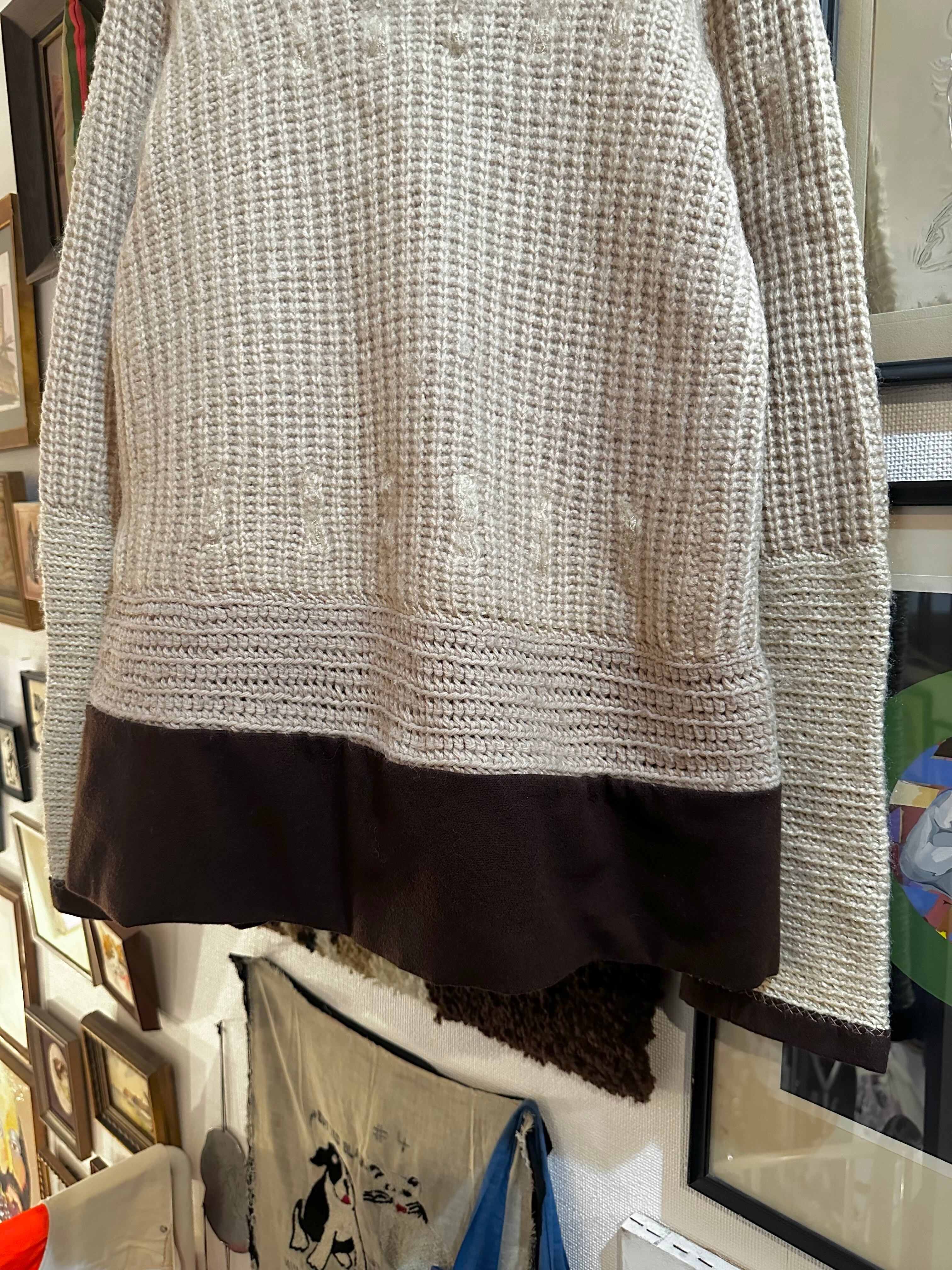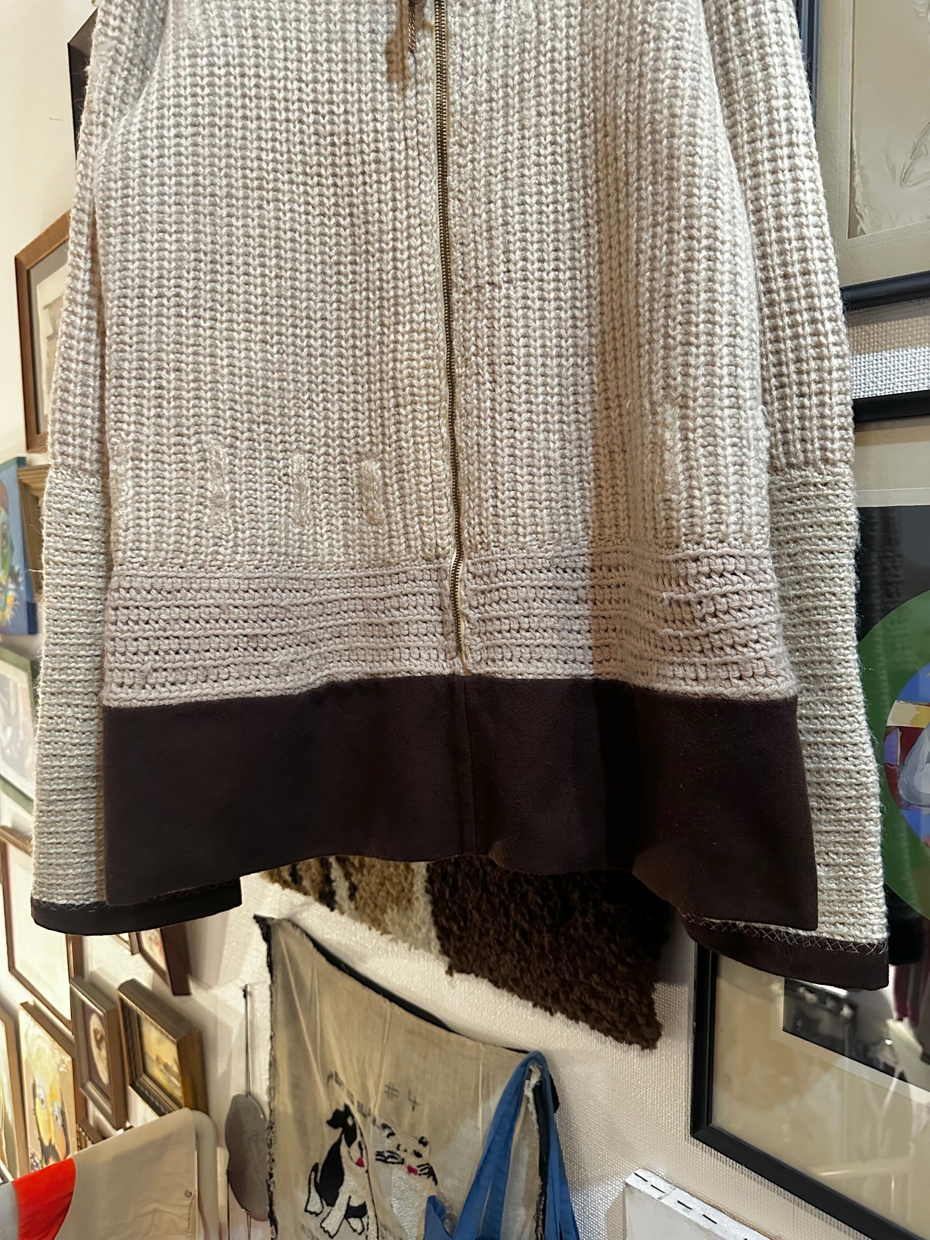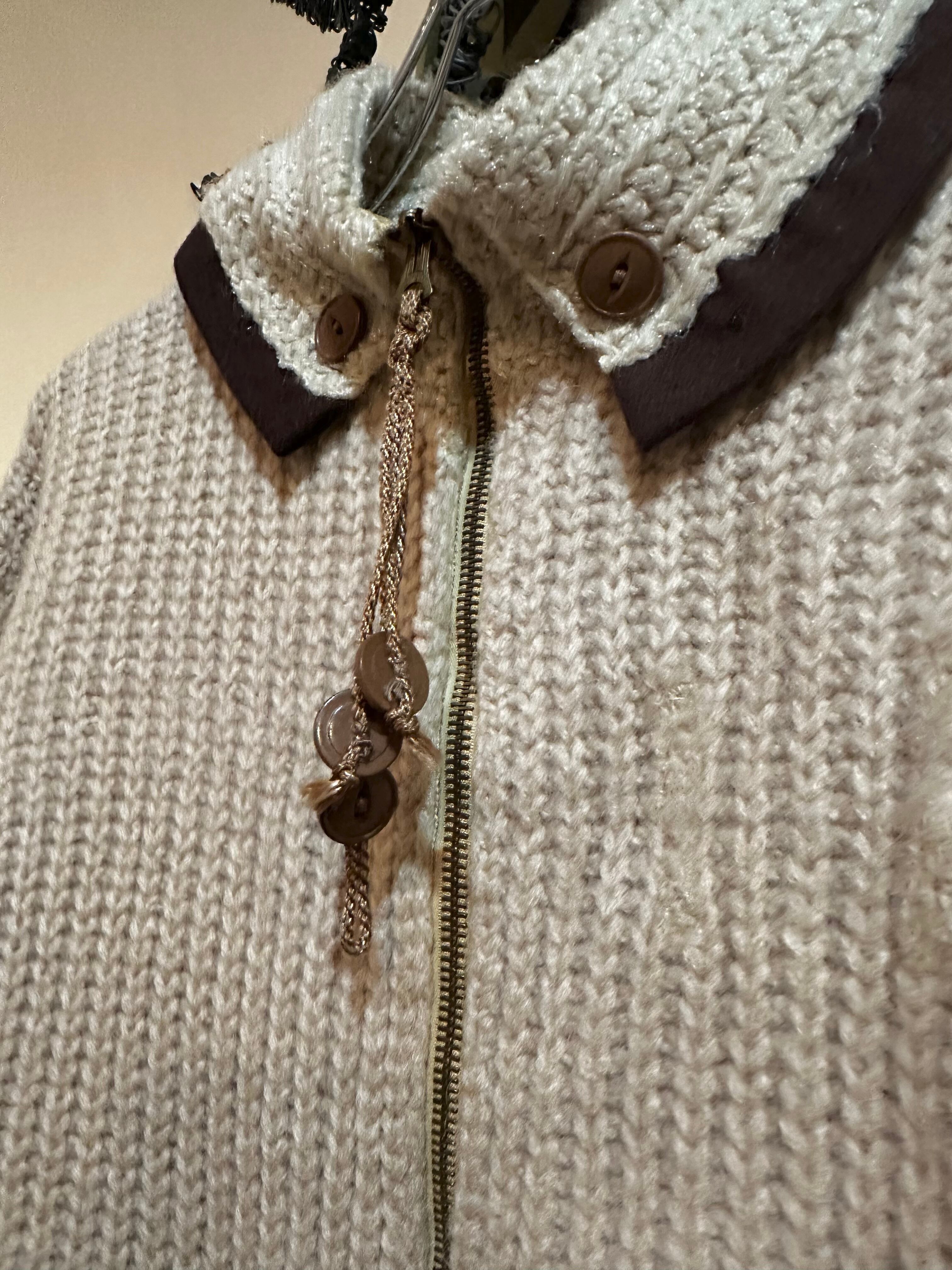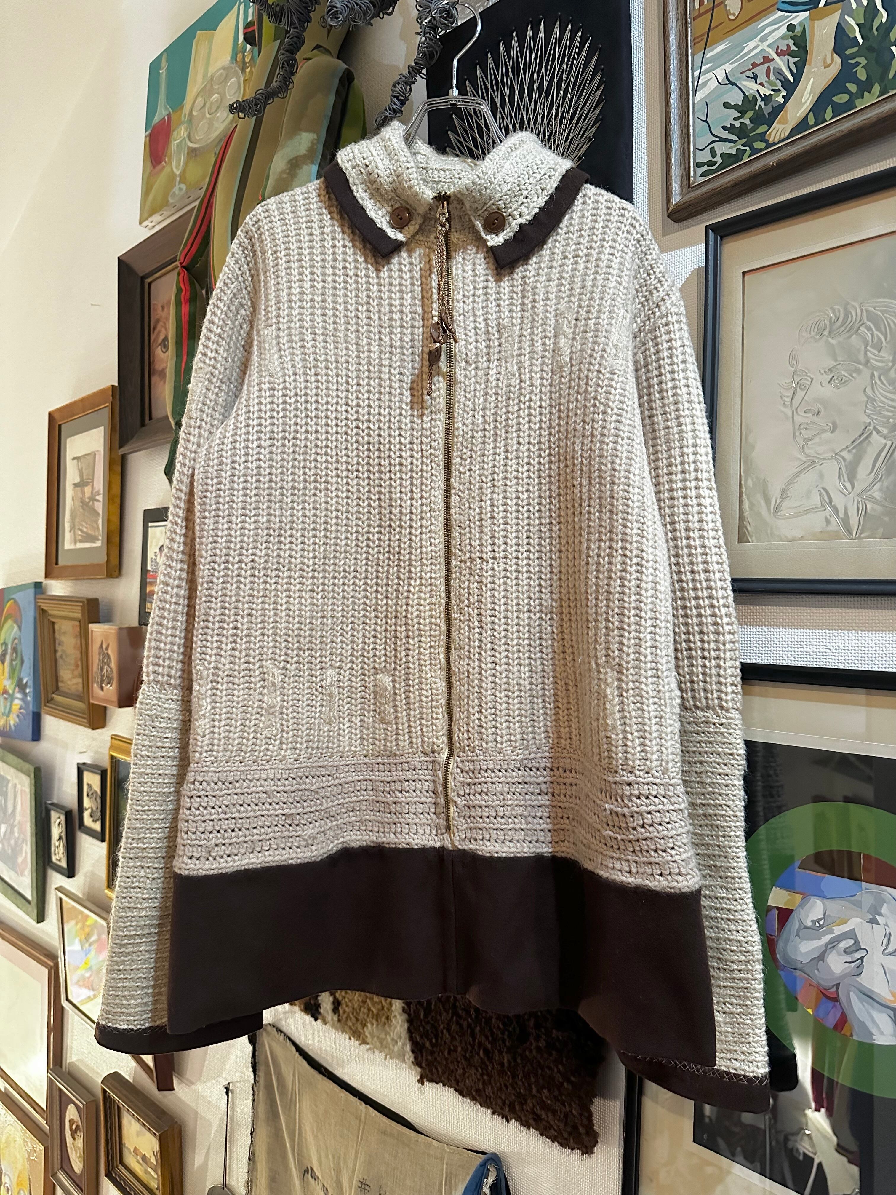ジップの紐についた猫目ボタンやギリギリのところでプルオーバーなところや袖の切り替えなど所々にデザインの効いたむちゃんこ可愛いニットです!