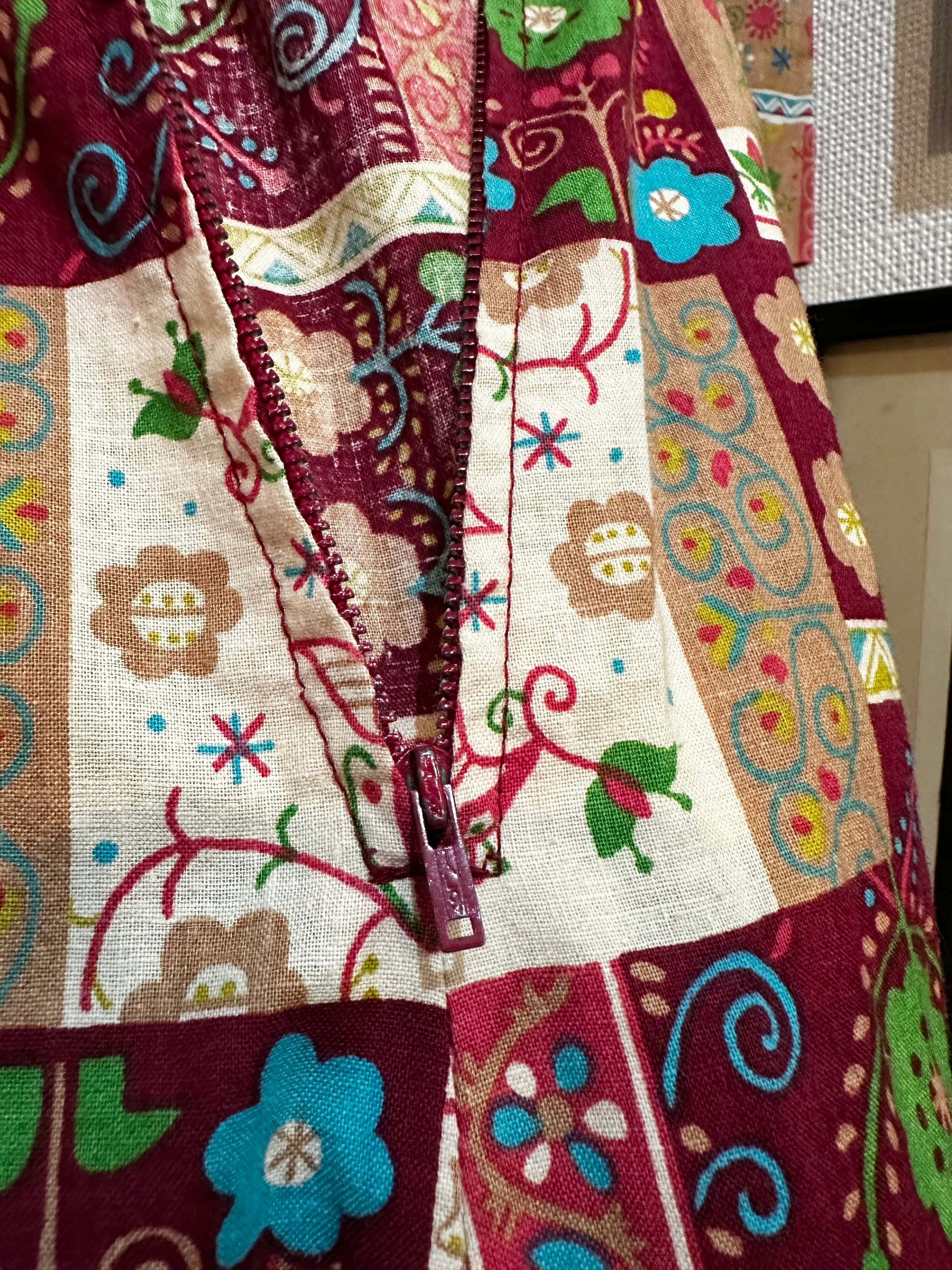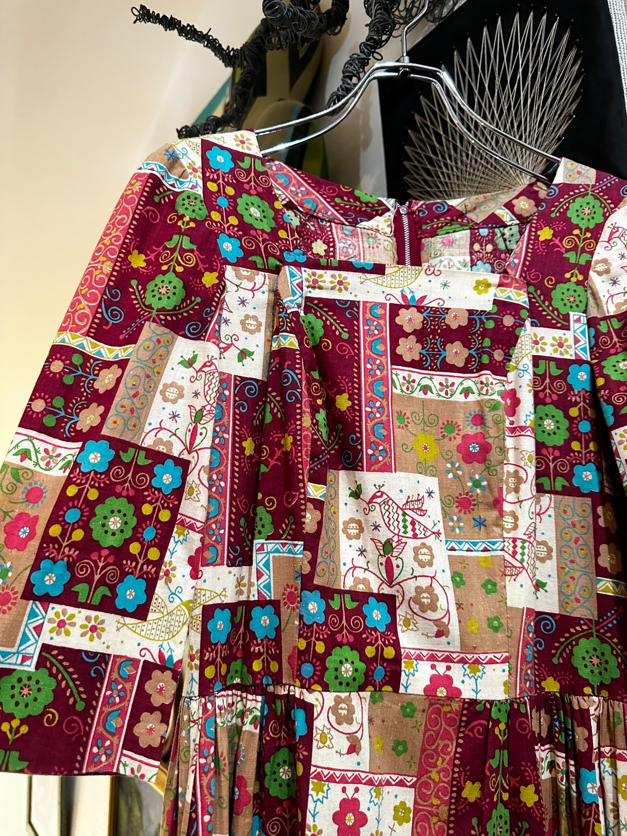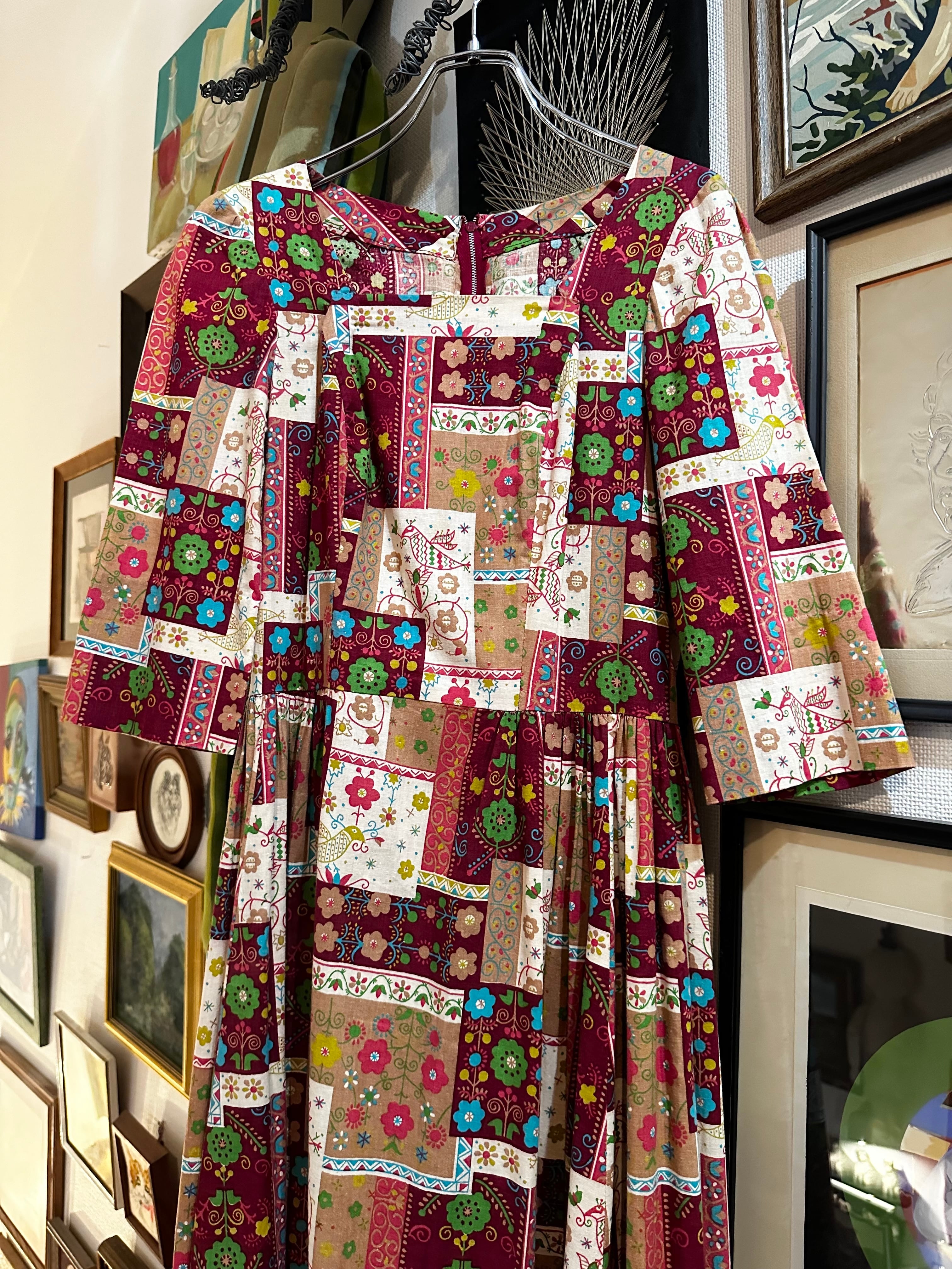 パッチワークみたいなプリント柄が可愛いオールドワンピです。