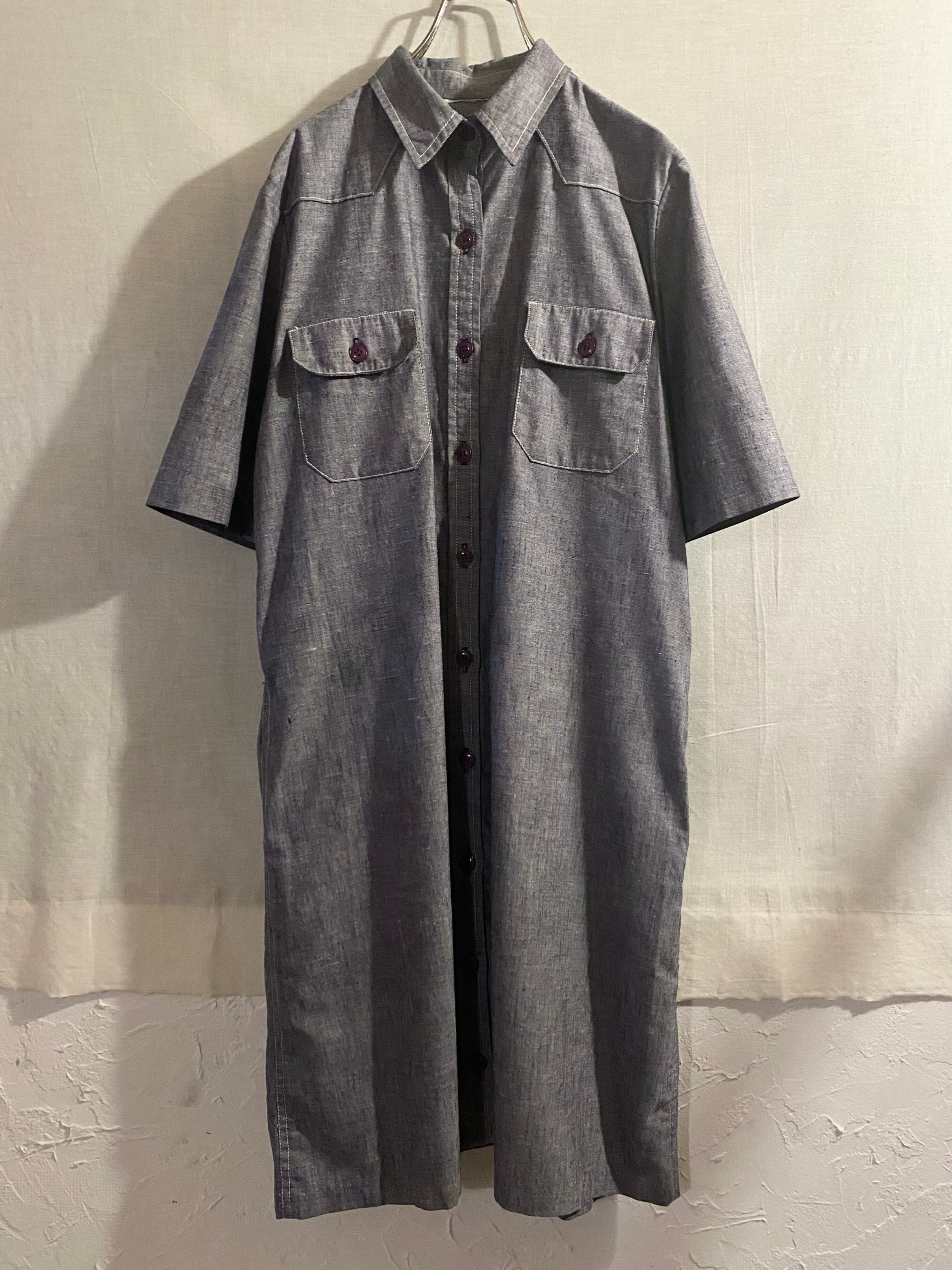 70's 80's シャンブレーロングシャツ ワンピース ⭐︎8