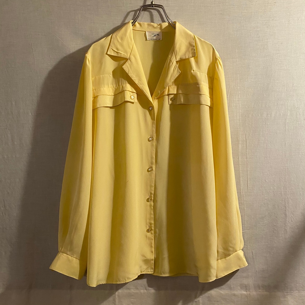 フェイクのフラップポケットと袖と胸にかけて入ったステッチのデザインが可愛いオープンカラーブラウスです!