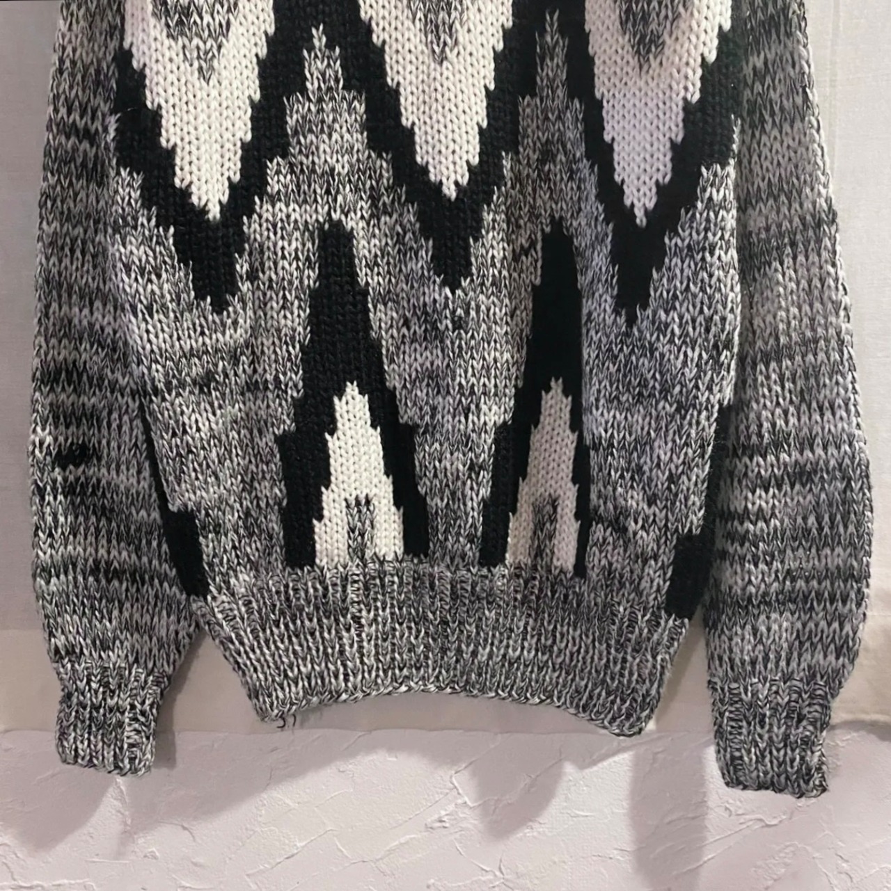 ネイティブっぽい柄と霜降りノイズの組み合わせが可愛いアクリルセーターです!