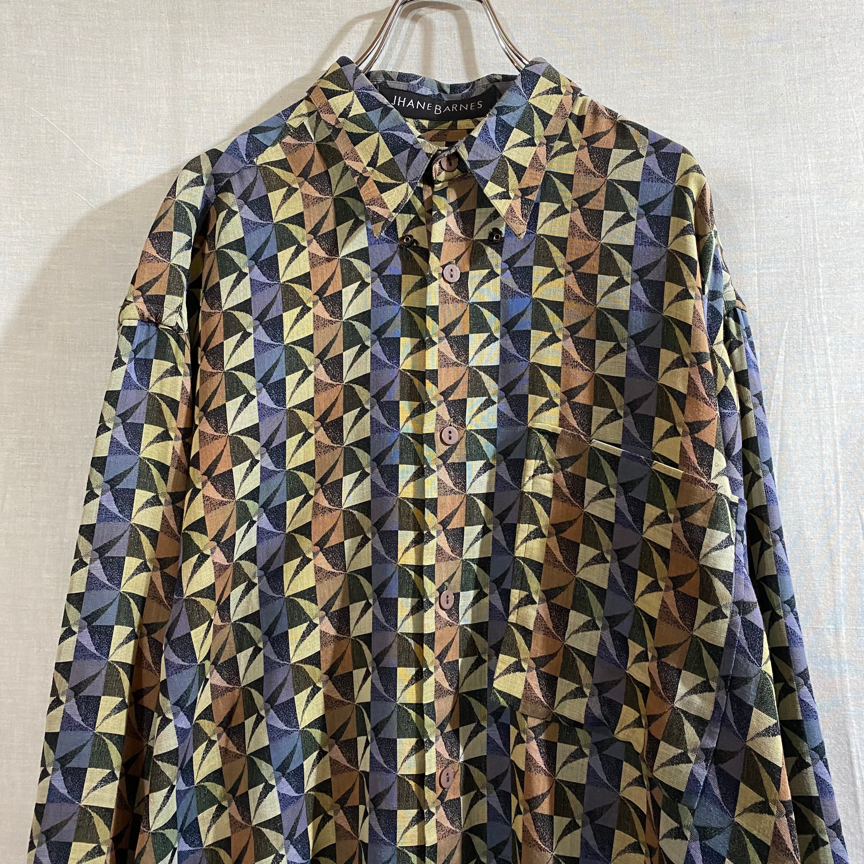 90's JHANE BARNES 総柄 BURIAL柄 デザインシャツ ⭐︎6