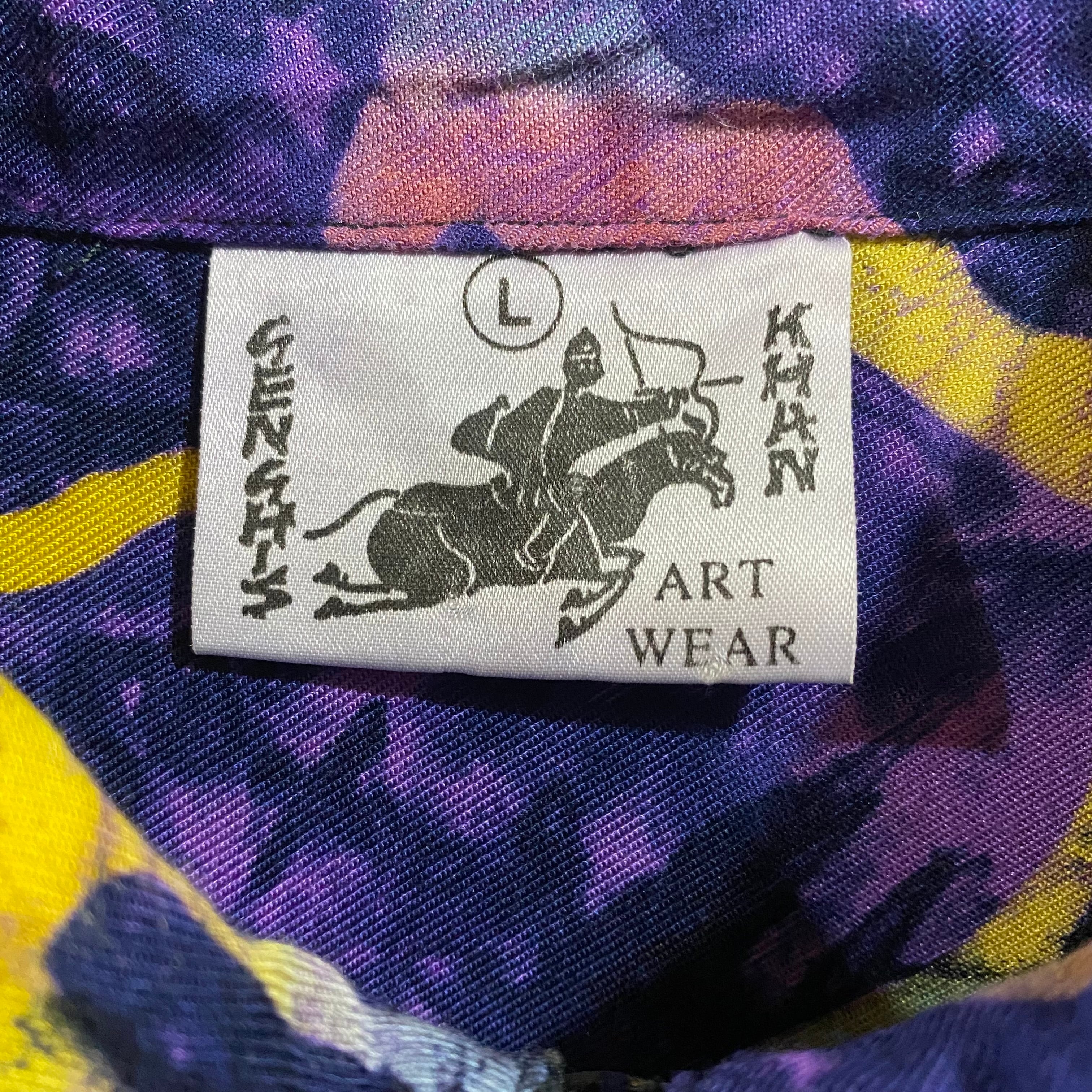 毒々しい紫ベースの総柄レーヨンシャツです!