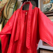80's Switching Quilted Bright Red Dress ⭐︎4