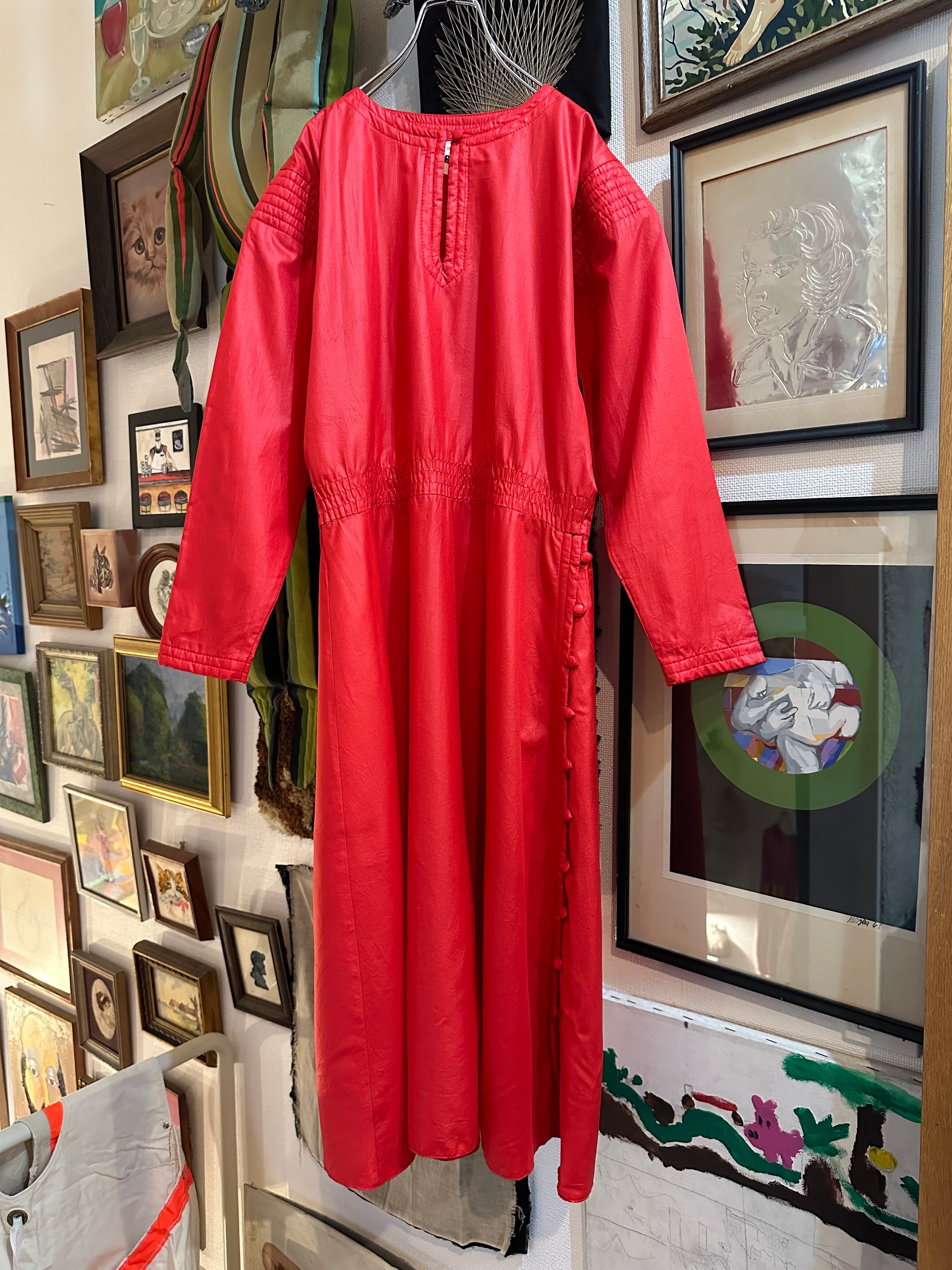 キルティングの切り替わりと左裾のボタンの羅列がが可愛い真っ赤なドレスです!