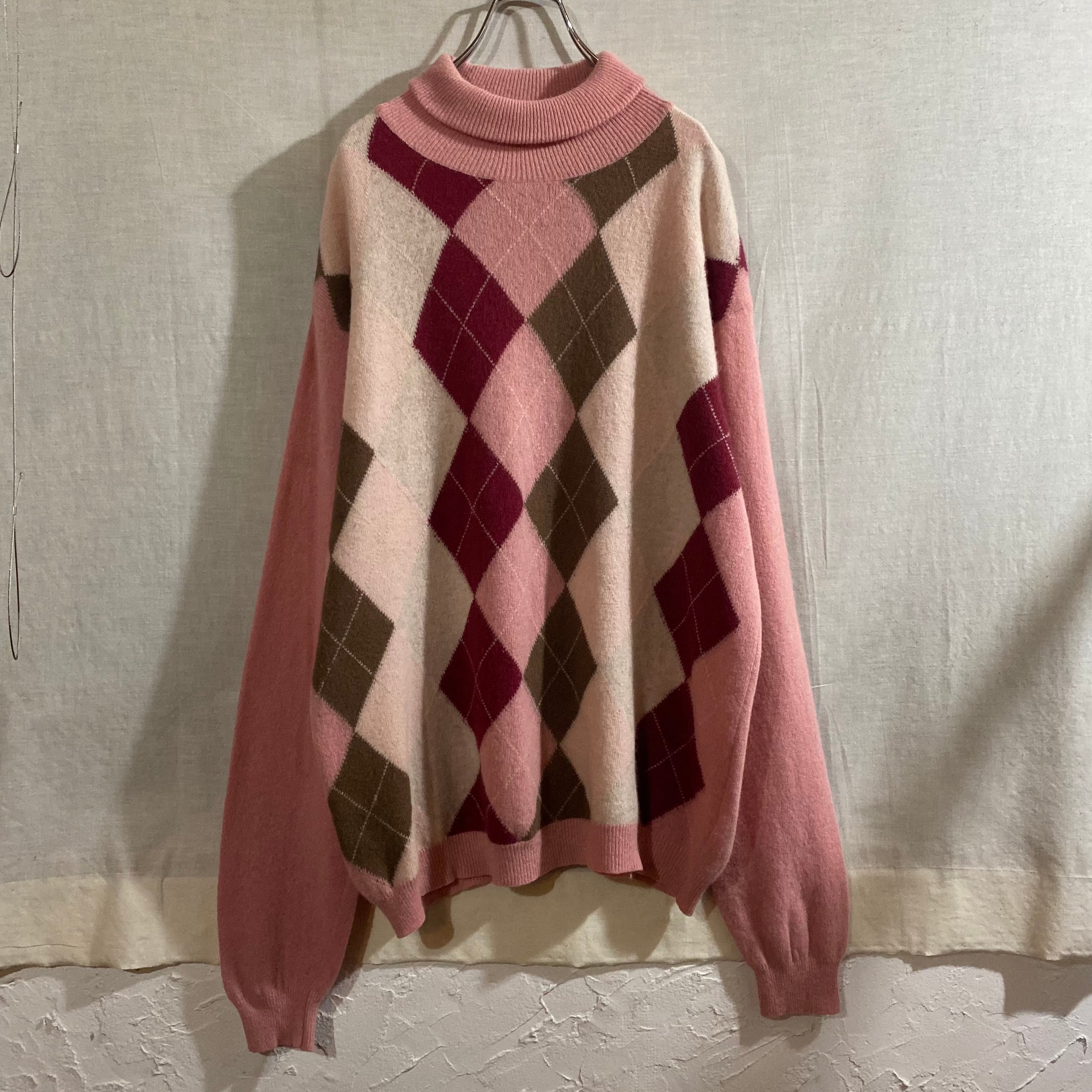90's イタリア製 アーガイルタートルネックセーター ⭐︎18