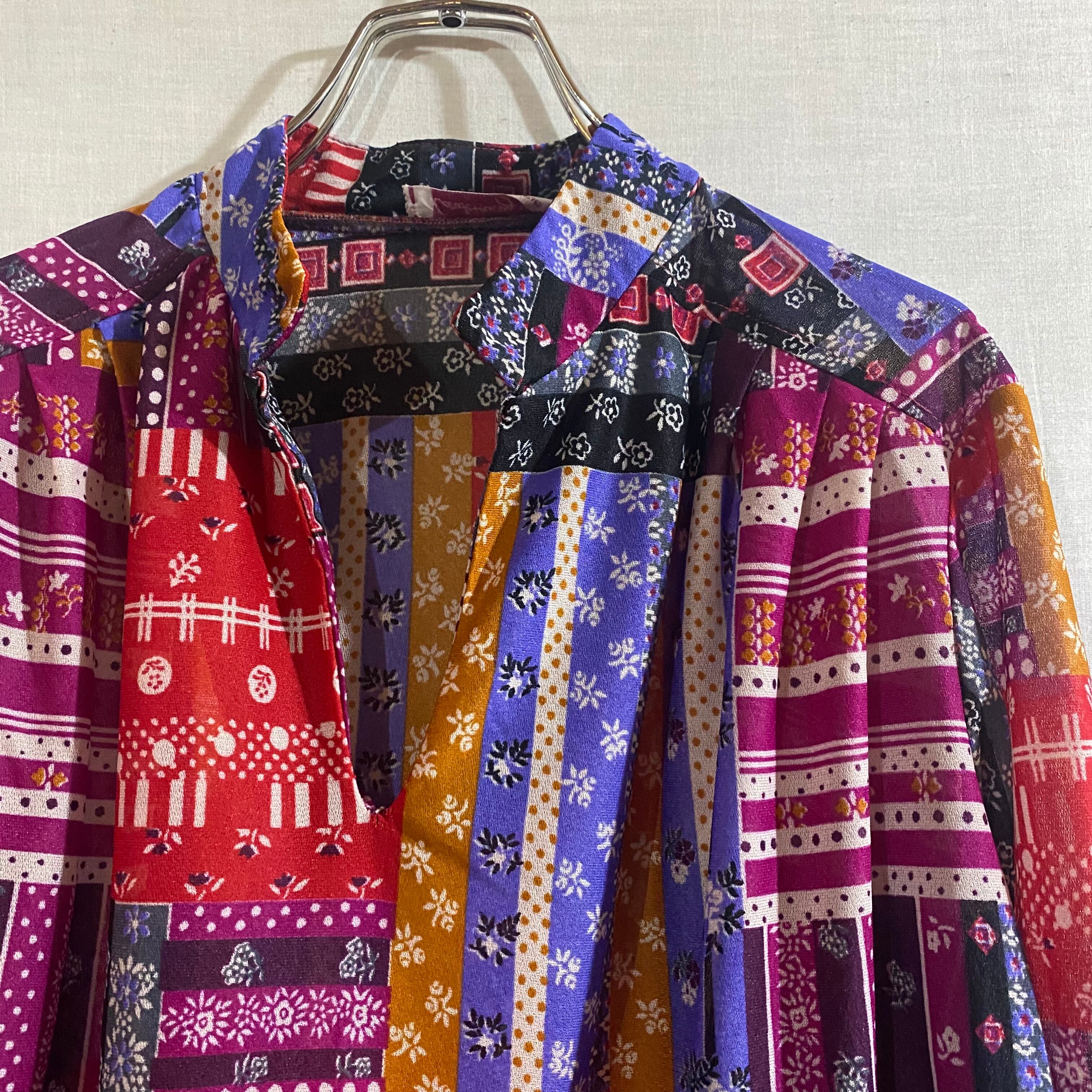 バンダナのパッチワークみたいな柄でシースルーなのが可愛いトップスです。
