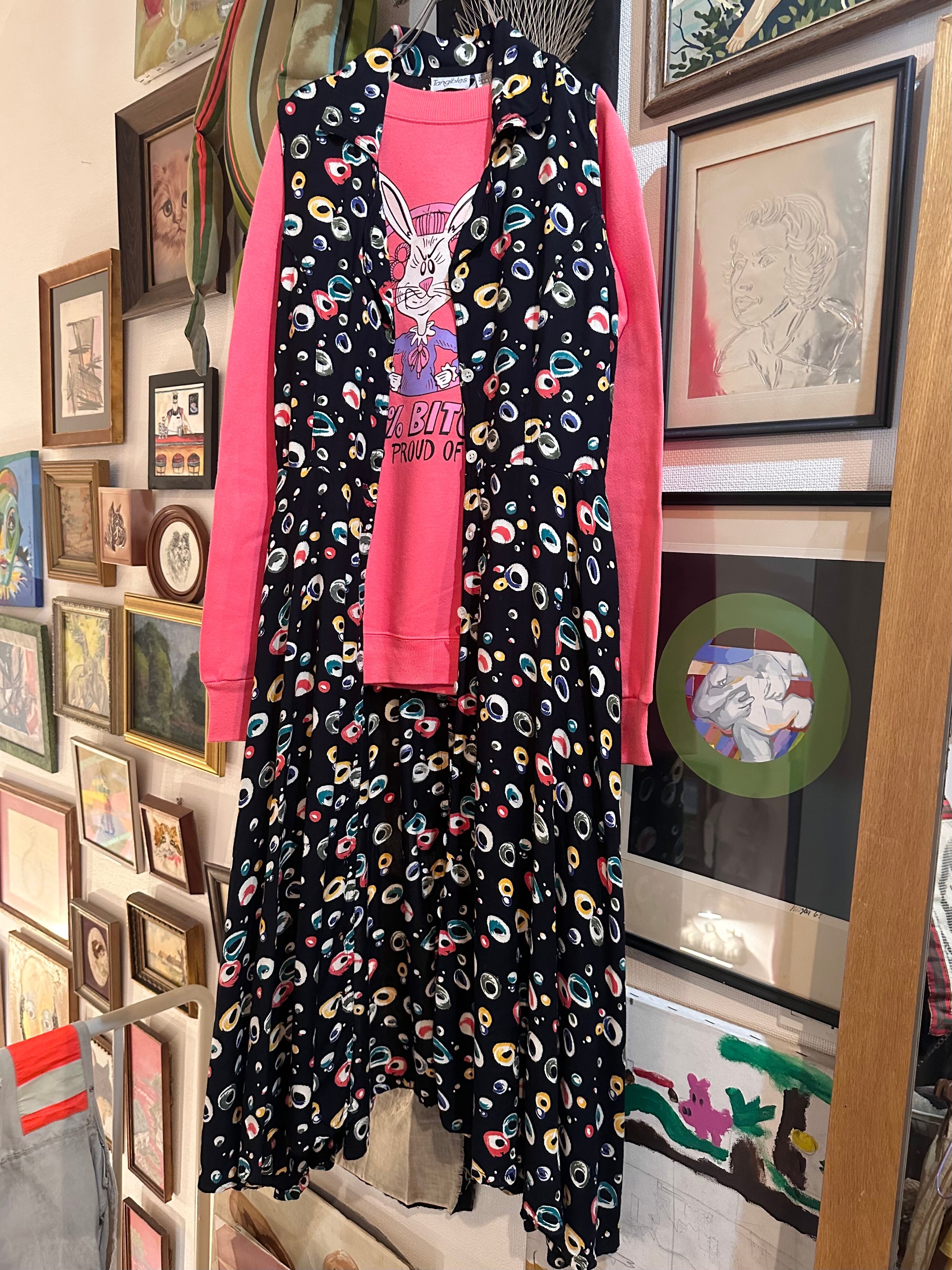 80's ノースリーブ 総柄レーヨンワンピース ⭐︎21