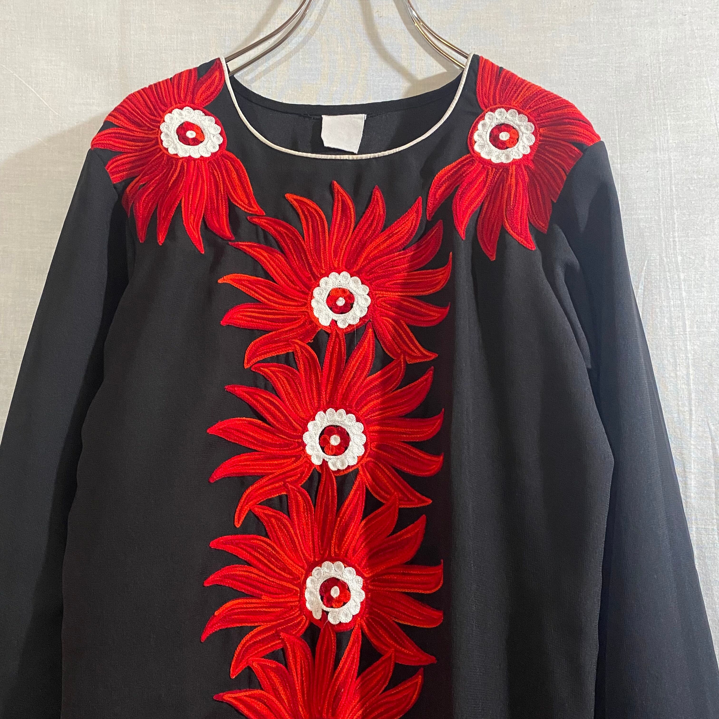 デカめのお花がドカーンと刺繍されたワンピースです!