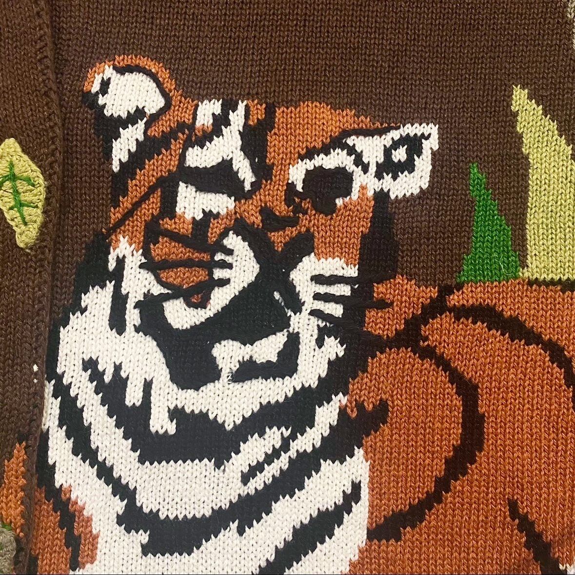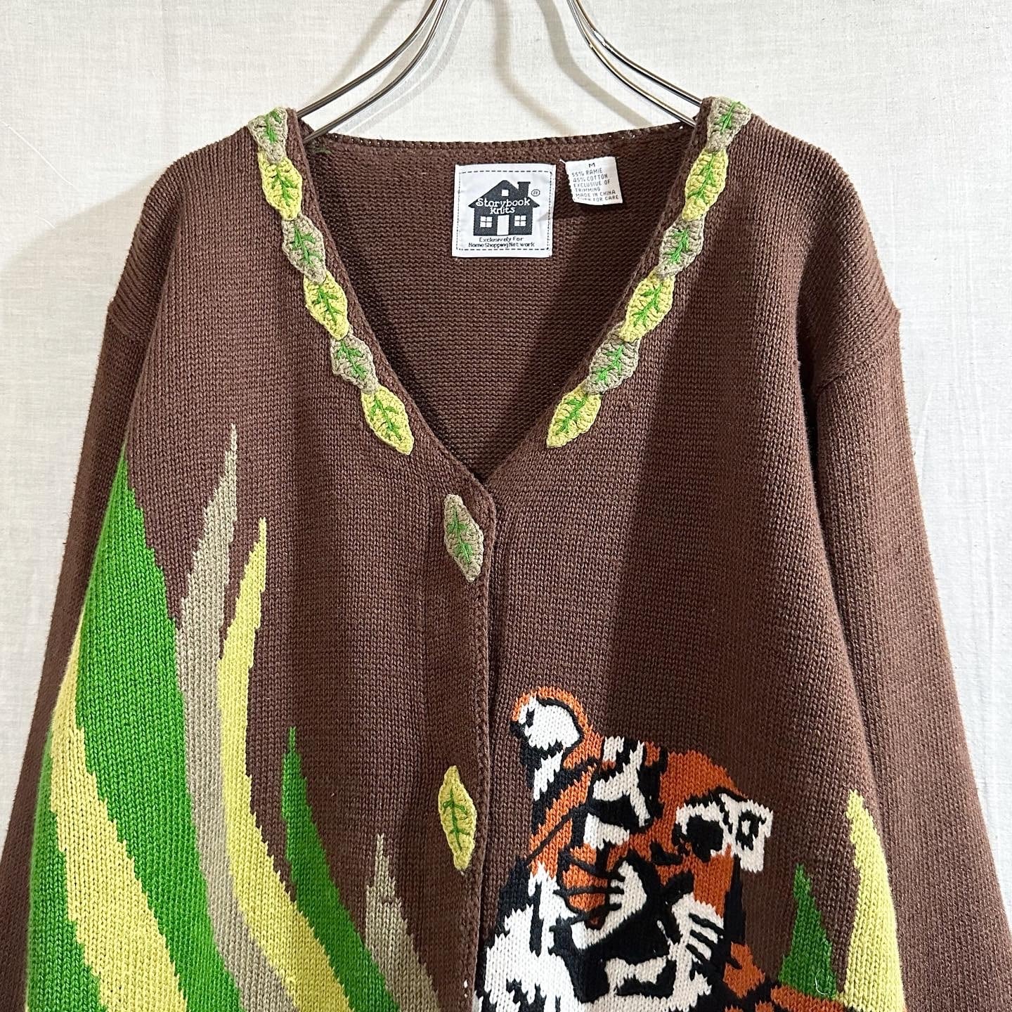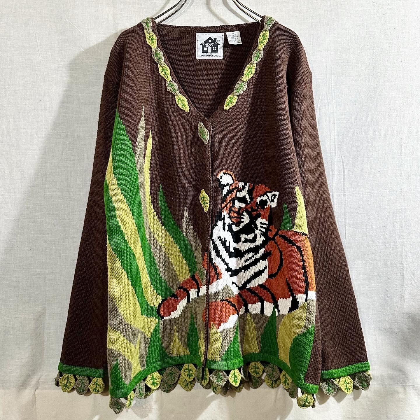 90's Storybook Tiger & Leaf Cardigan 虎 トラ タイガー カーディガン B3