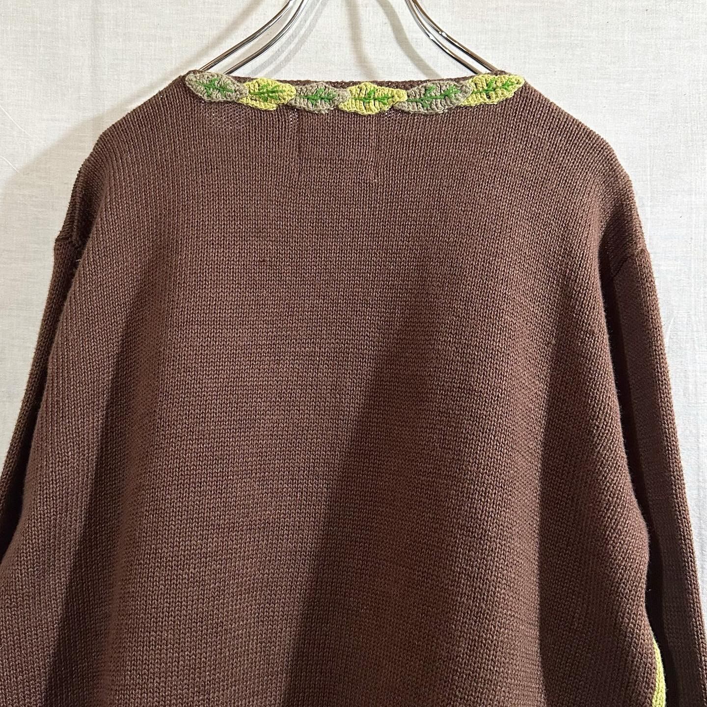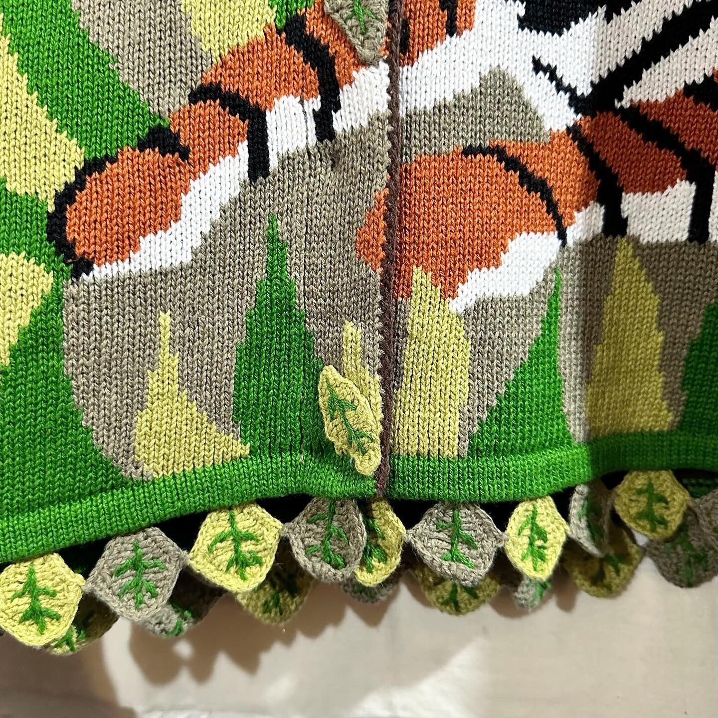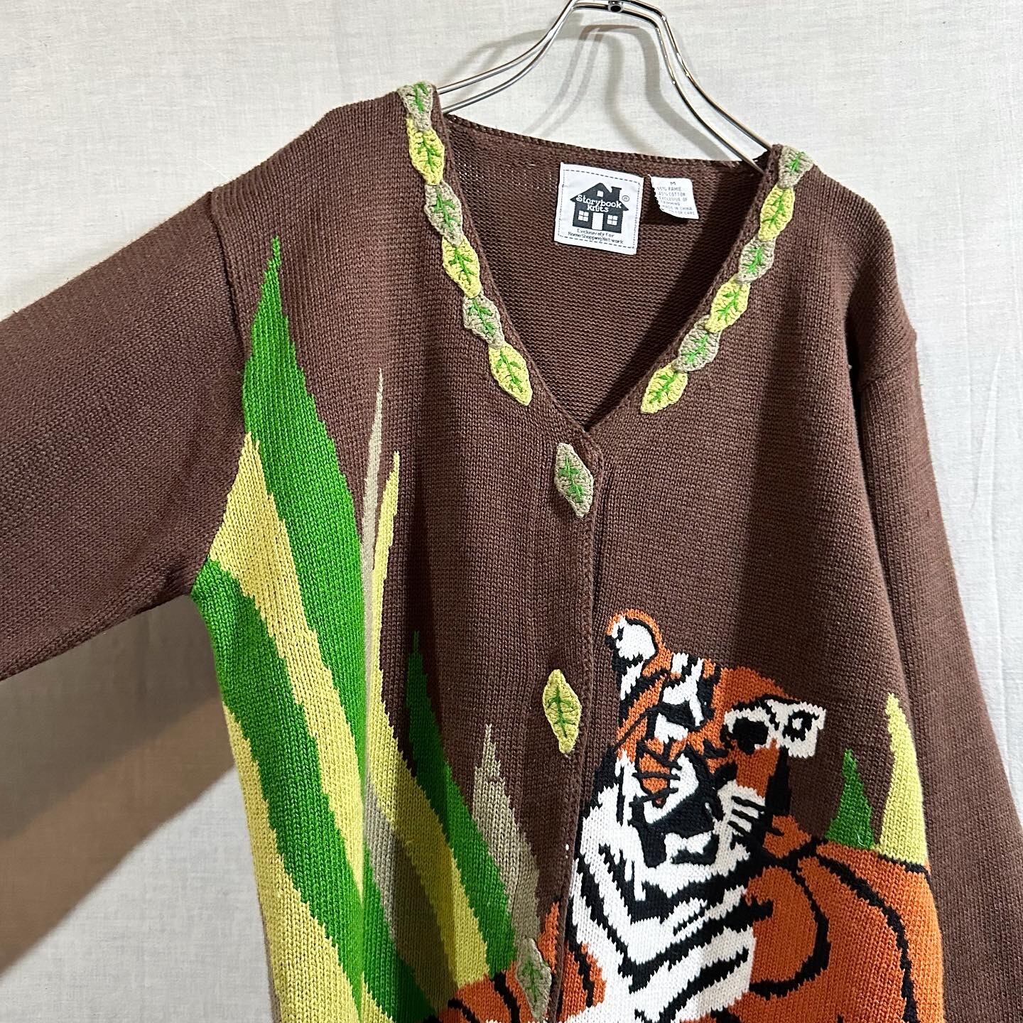 90's Storybook Tiger & Leaf Cardigan 虎 トラ タイガー カーディガン B3