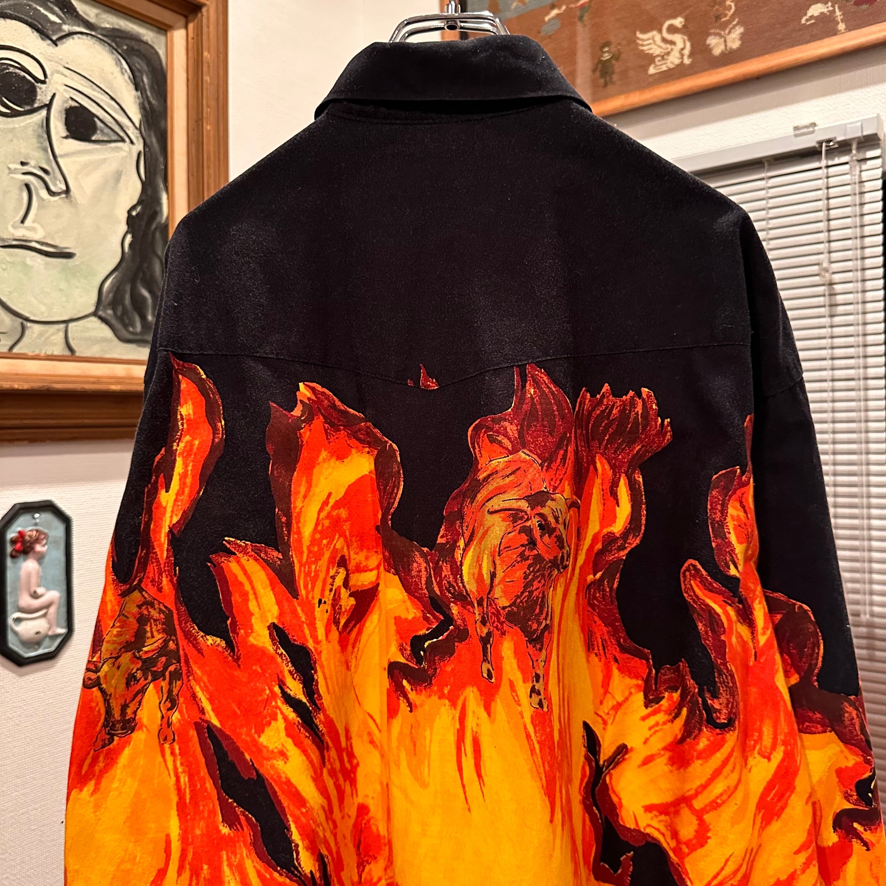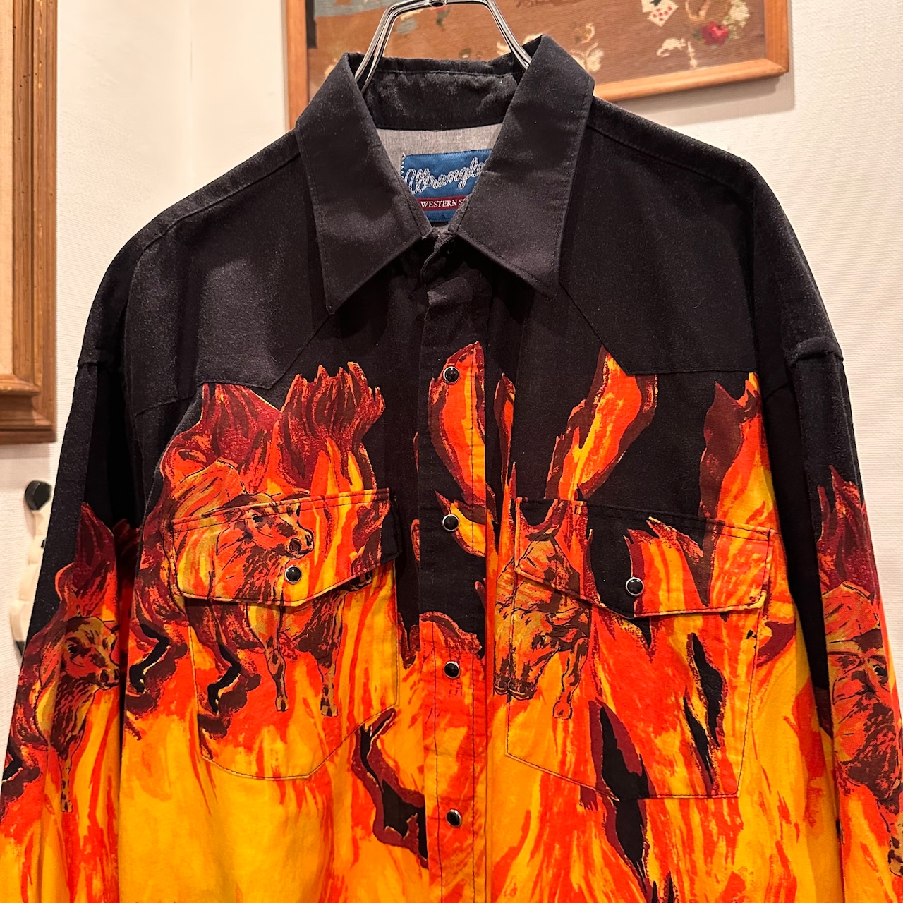 90'sラングラー ファイアー柄 シャツ wrangler PPP
