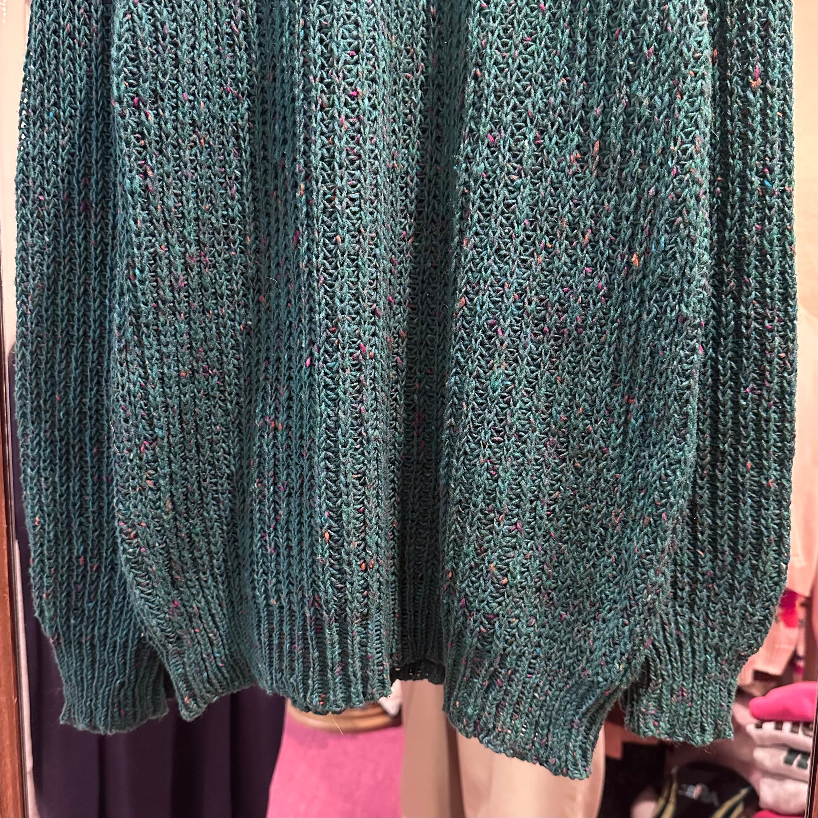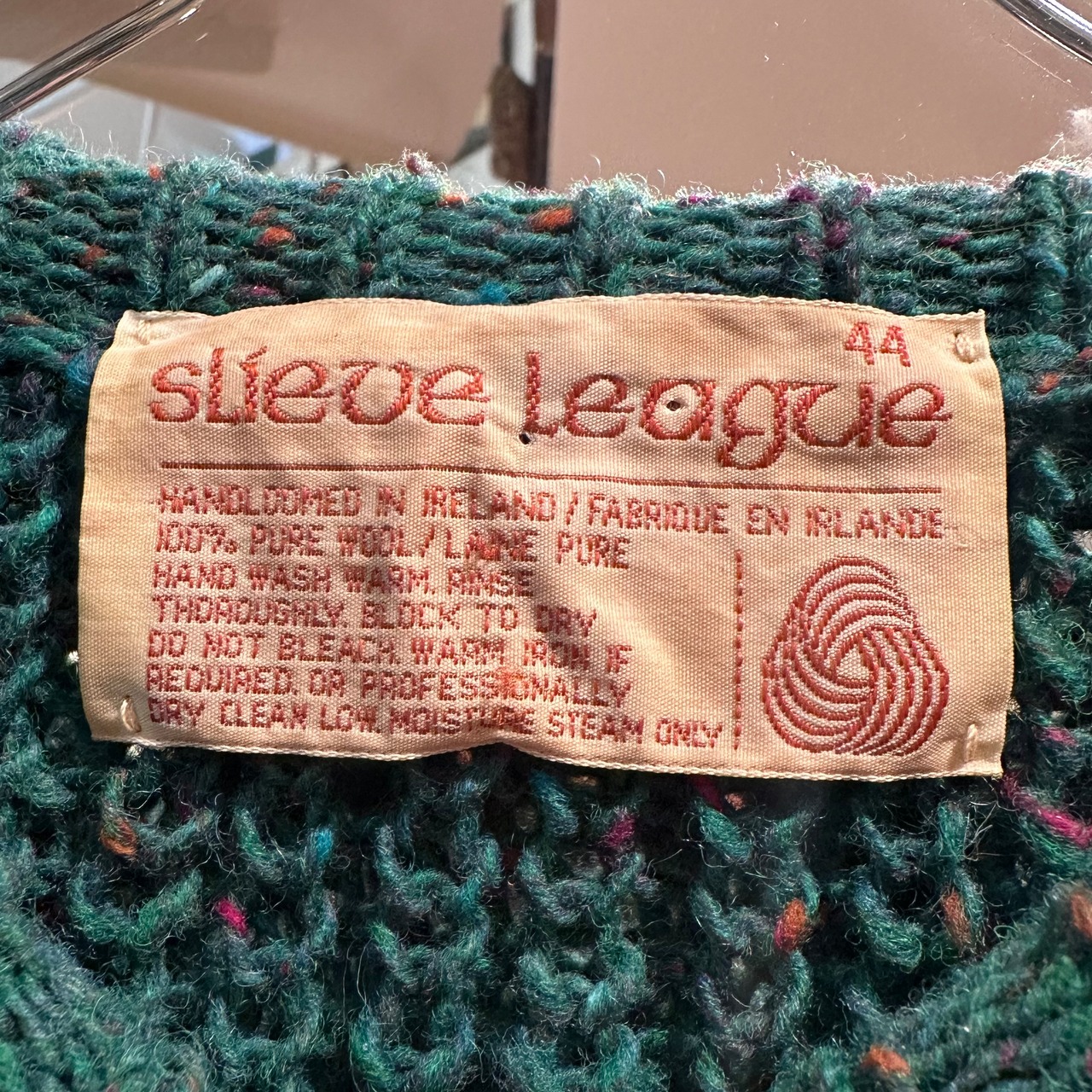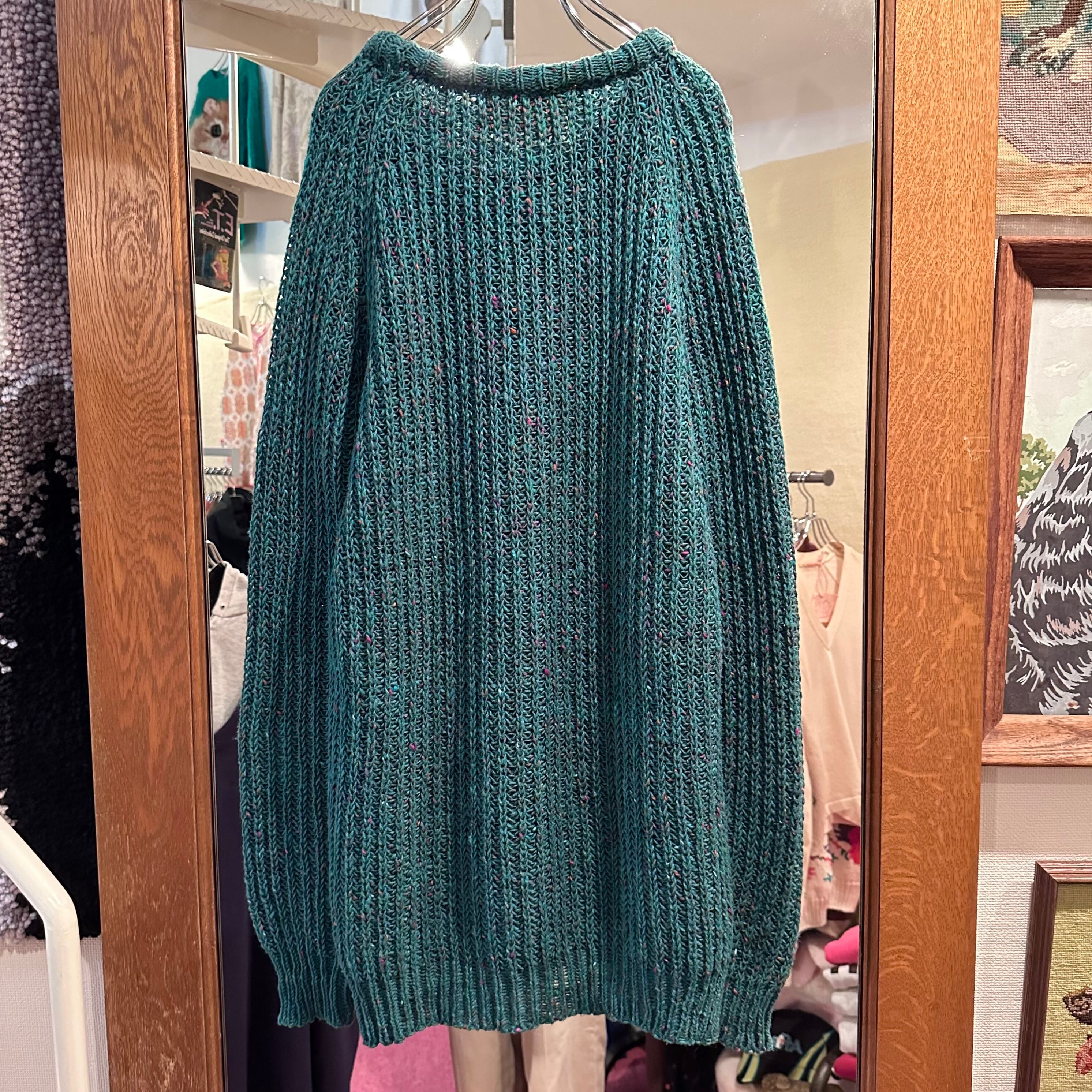 緑ベースの糸にカラフルな糸が混ざっていてとても可愛いアイルランドニットです!