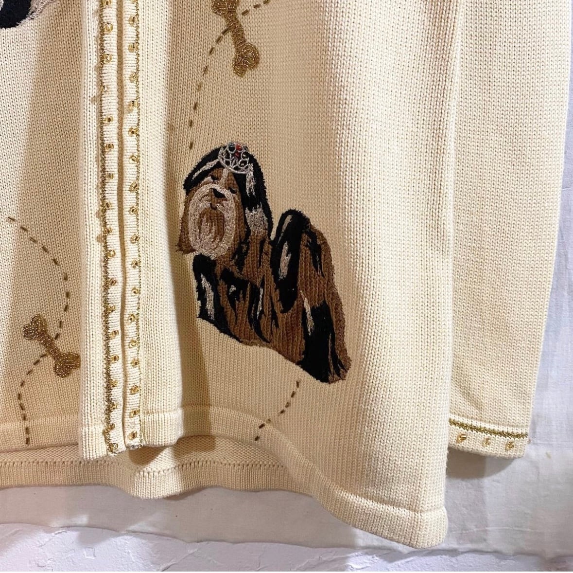 90's Storybook Dogs Zip Up Cardigan シーズー 犬 カーディガン