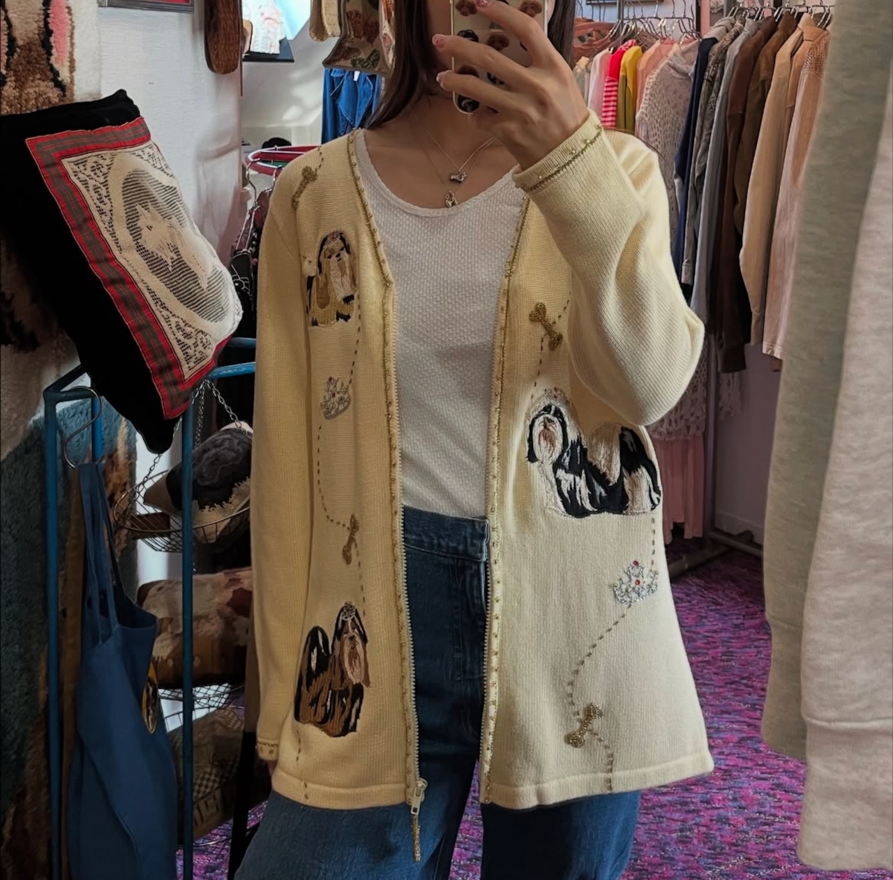 90's Storybook Dogs Zip Up Cardigan シーズー 犬 カーディガン ⭐︎1⚪︎