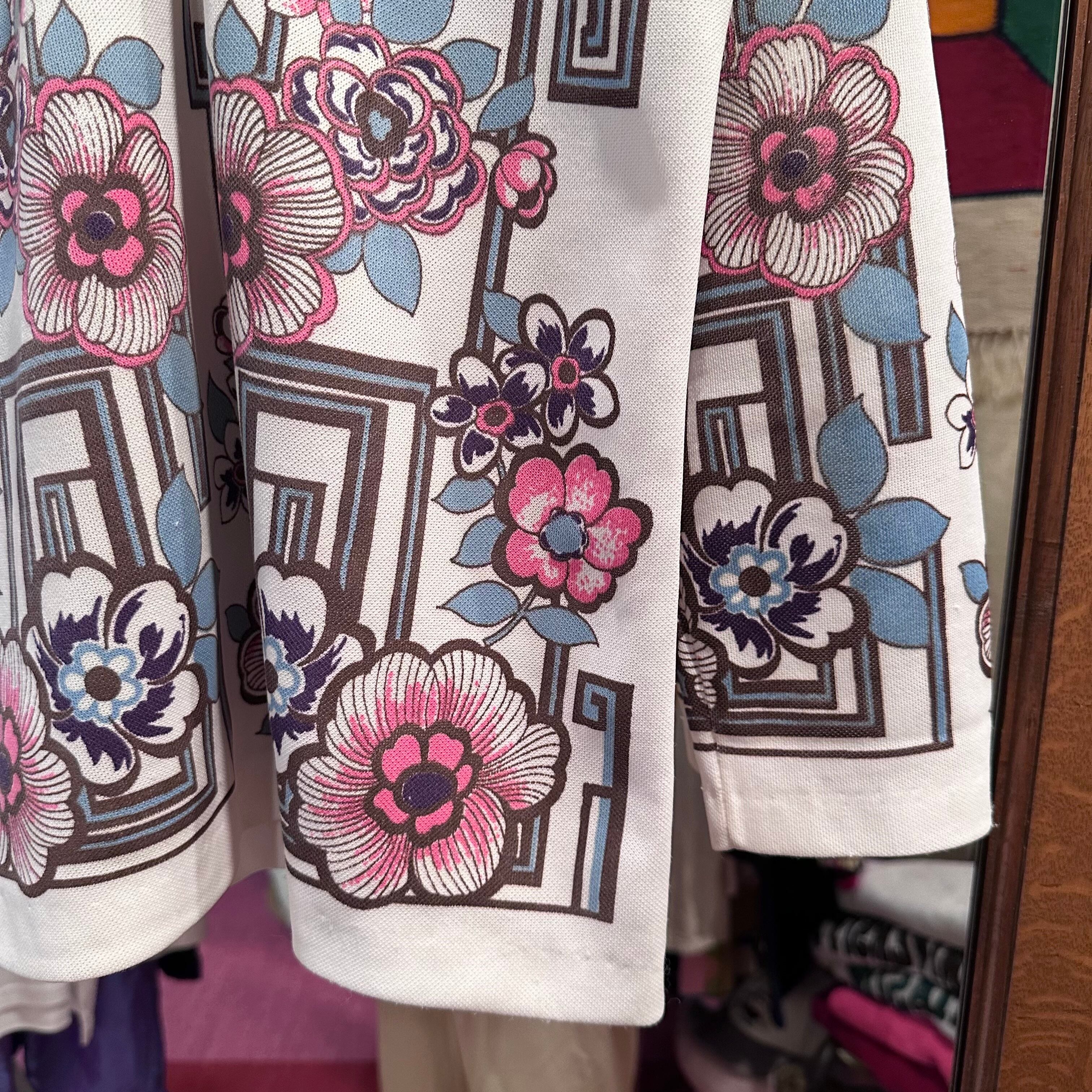 70's Half Zip Blouse ハーフジップ 総柄 ブラウス ⭐︎9