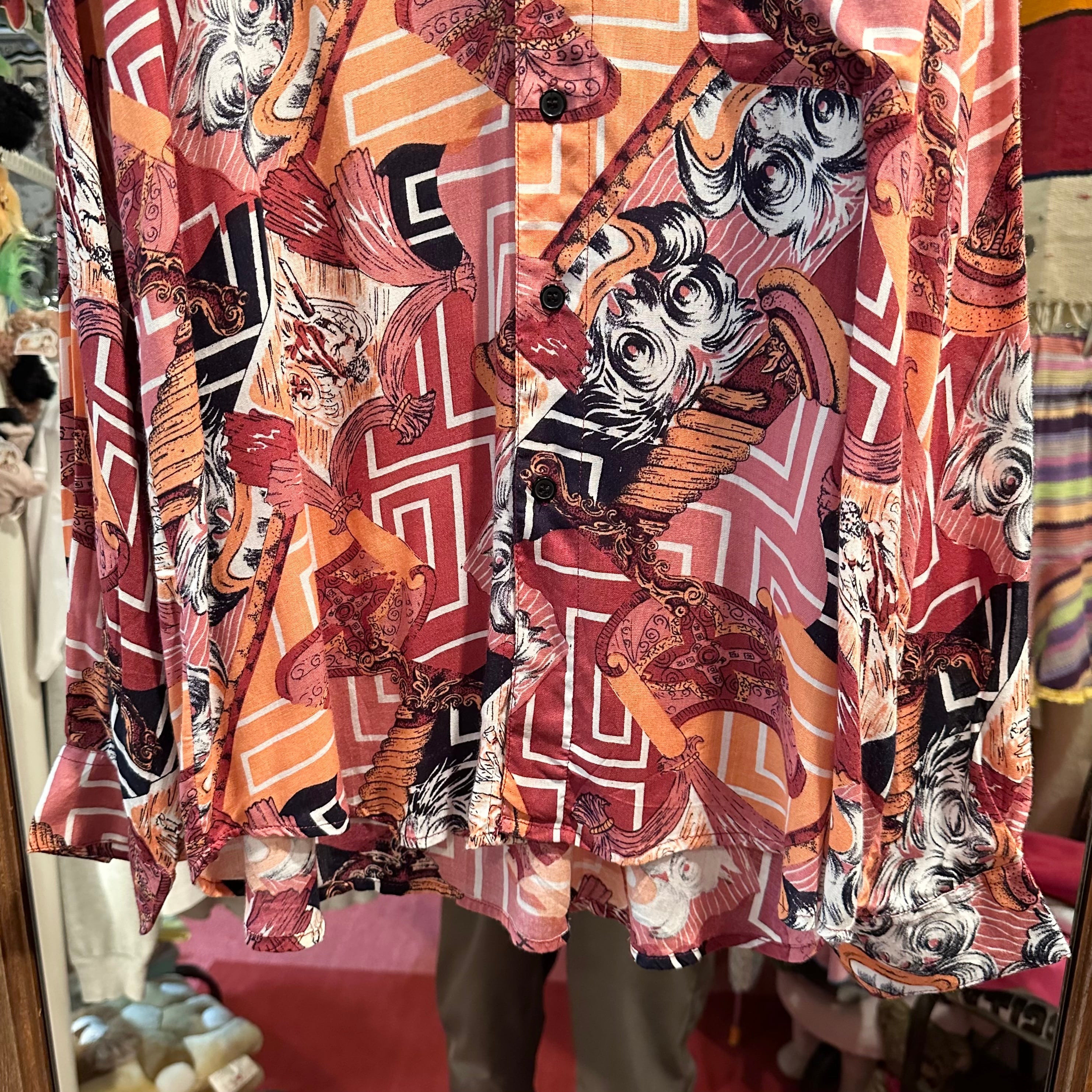 強欲な壺みたいな顔のキャラやよく見ると神殿っぽい銅像やギリシャ神話の戦士みたいなヤツもいて全体的にパンチのあるグッドな総柄に仕上がっています。