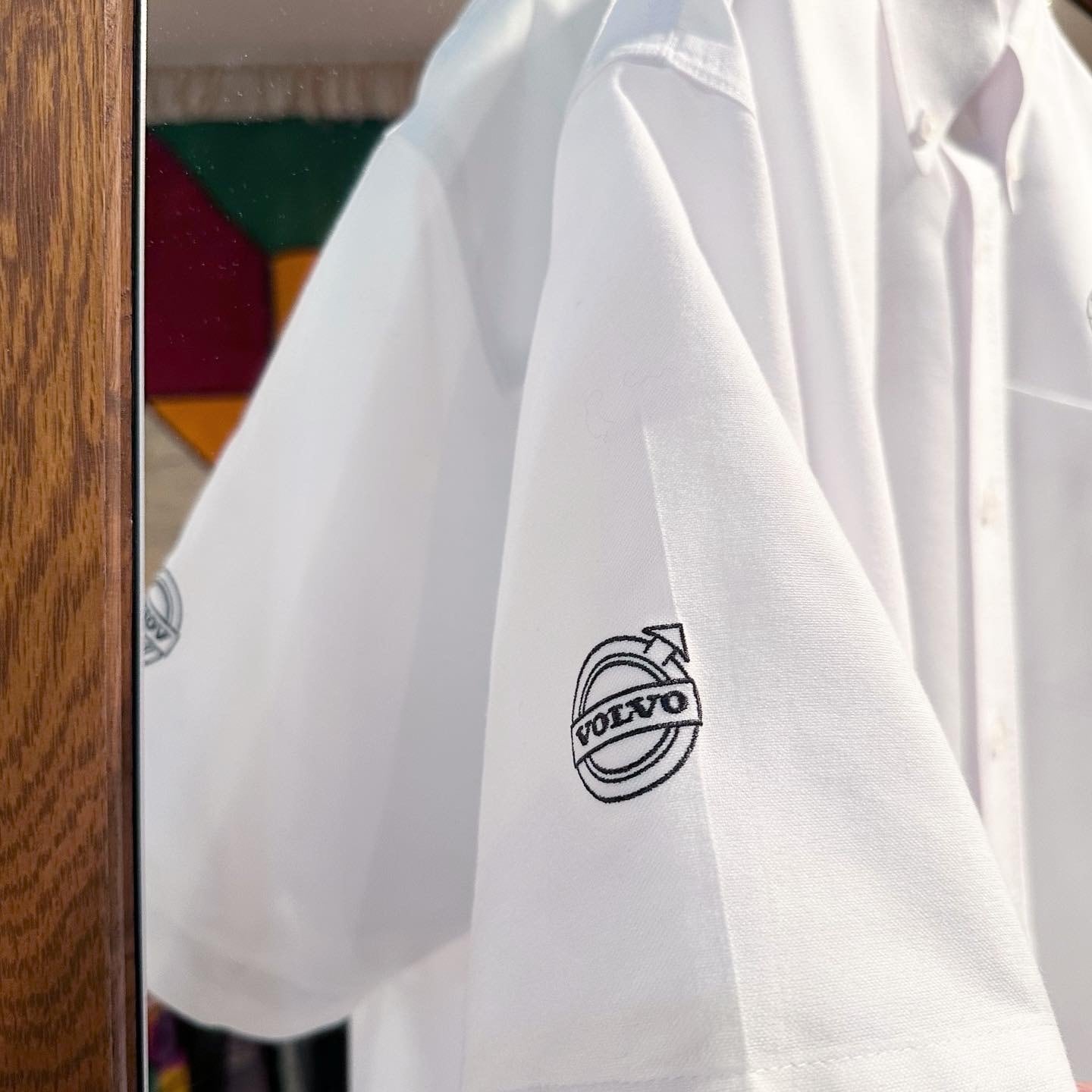 胸のワンポイントと右袖にもロゴが入ったVOLVOのボタンダウンシャツです!