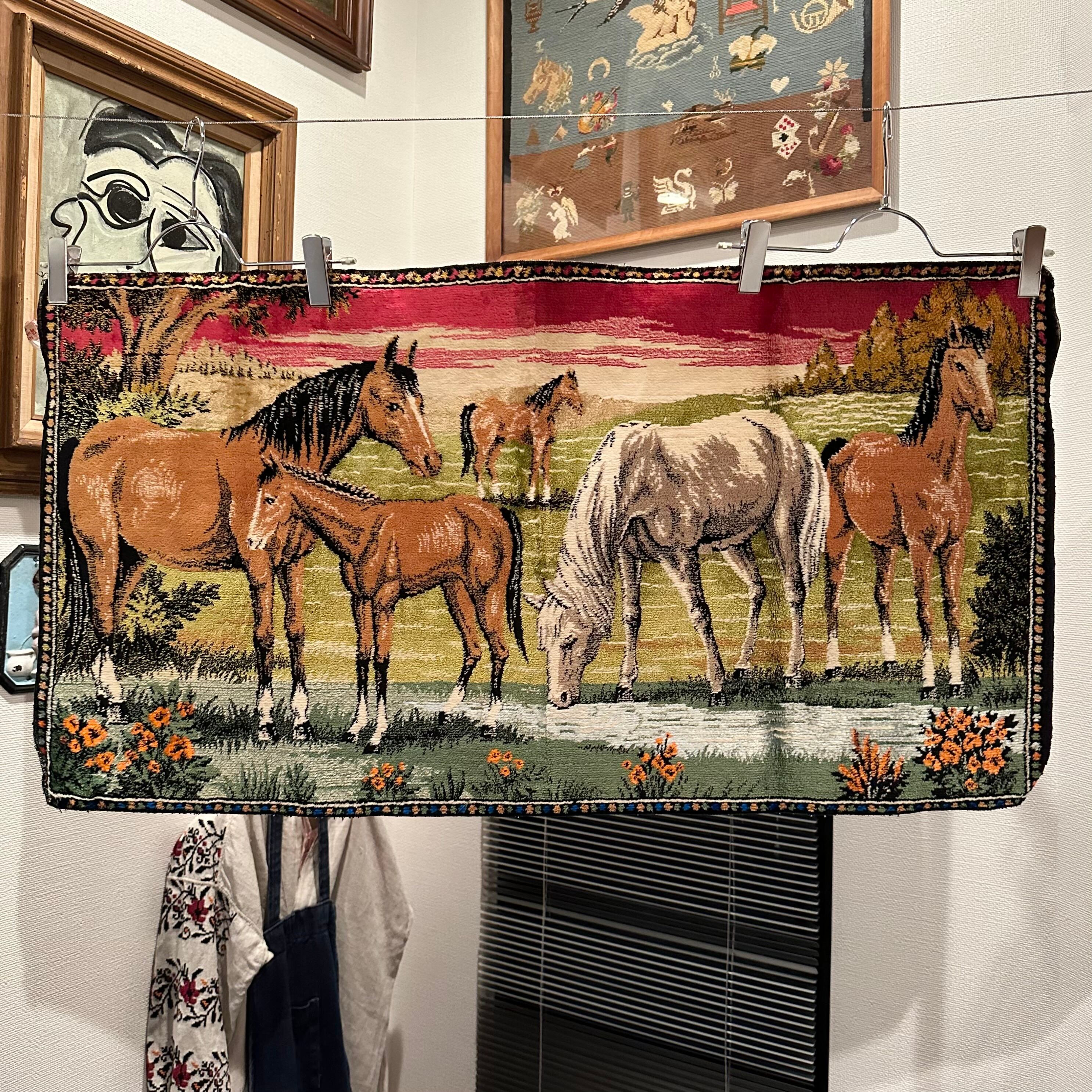 Vintage 馬さん ベルベット タペストリー