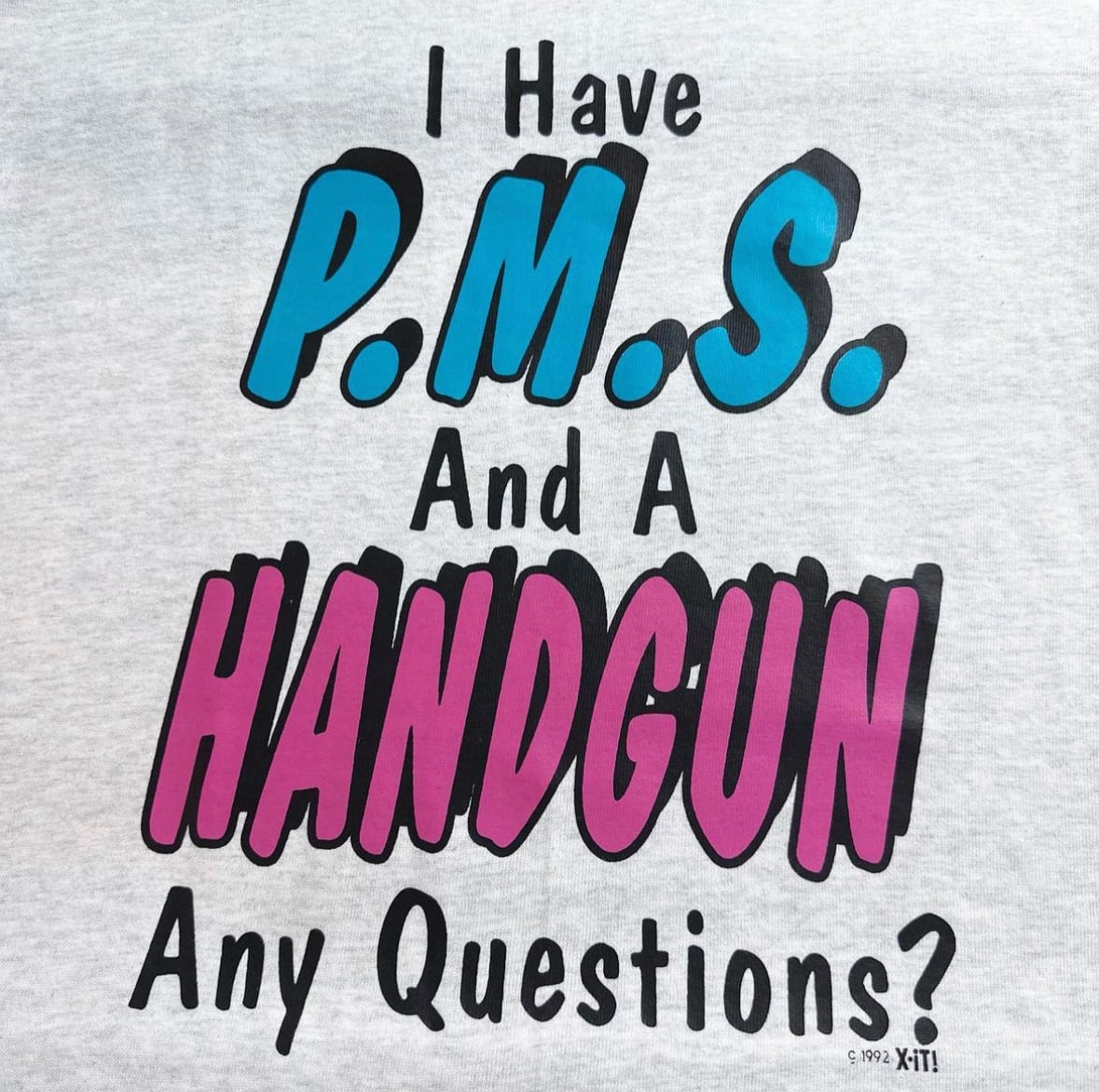 90's I Have PMS and a HANDGUN Any Question Tshirt ハンドガン持ってます Tシャツ KU