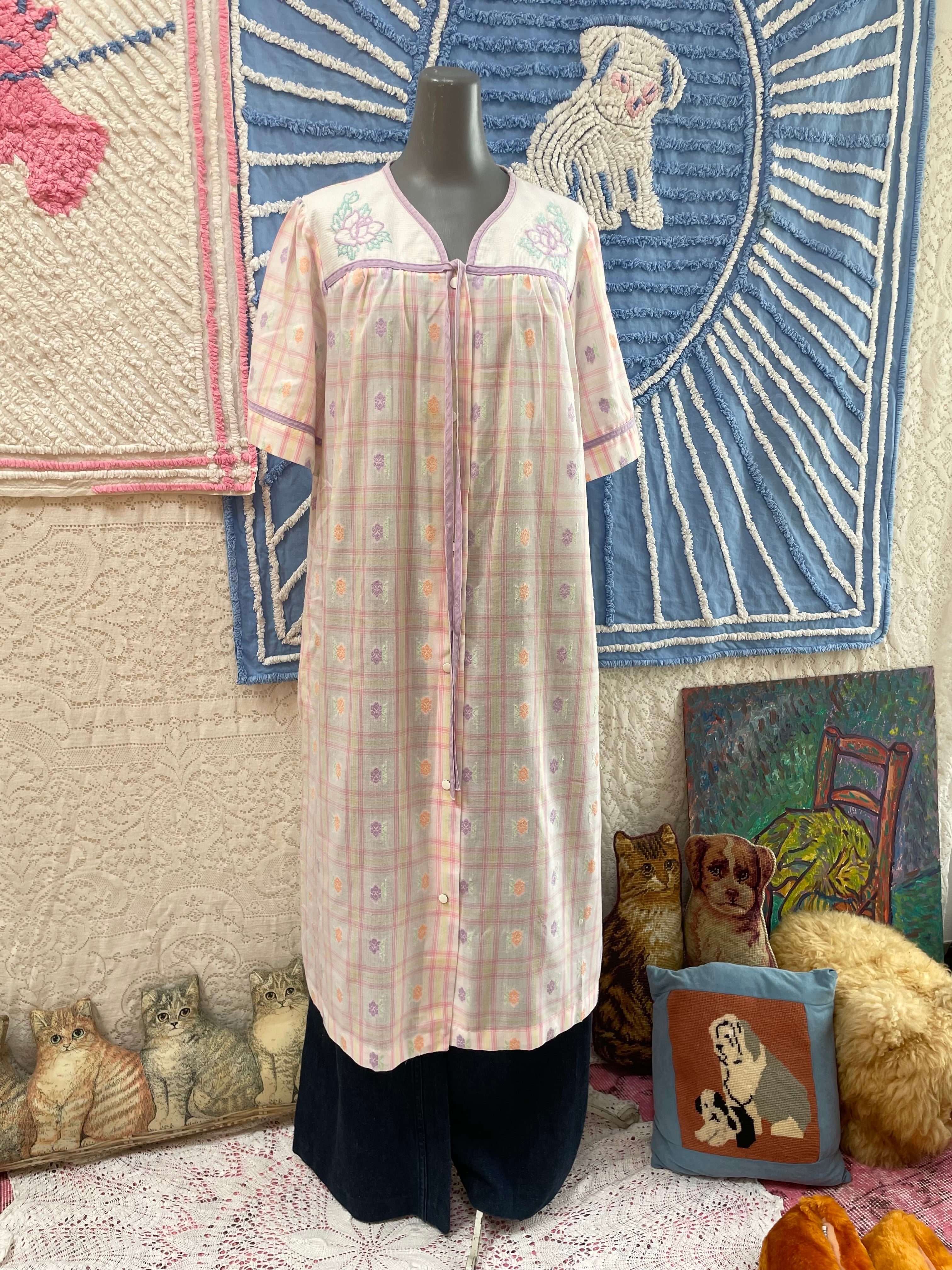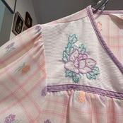 80's パステルカラー チェック 花柄刺繍 ワンピース ⭐︎6