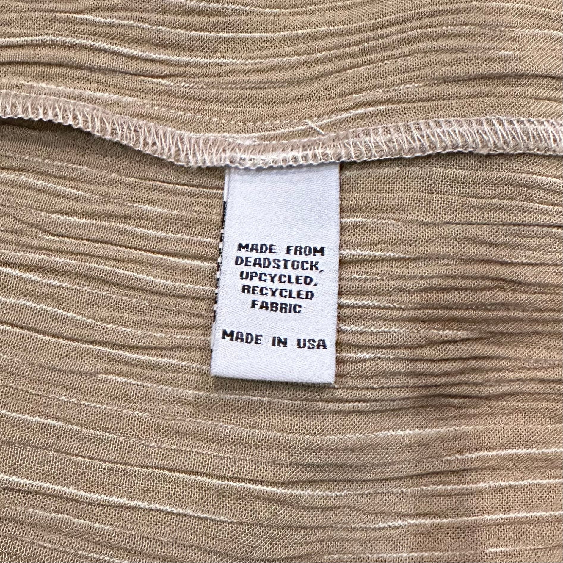 素材はMADE FROM DEADSTOCK UPCYCLED RECYCLED FABRICと表記されていて、レーヨンに近い質感です。