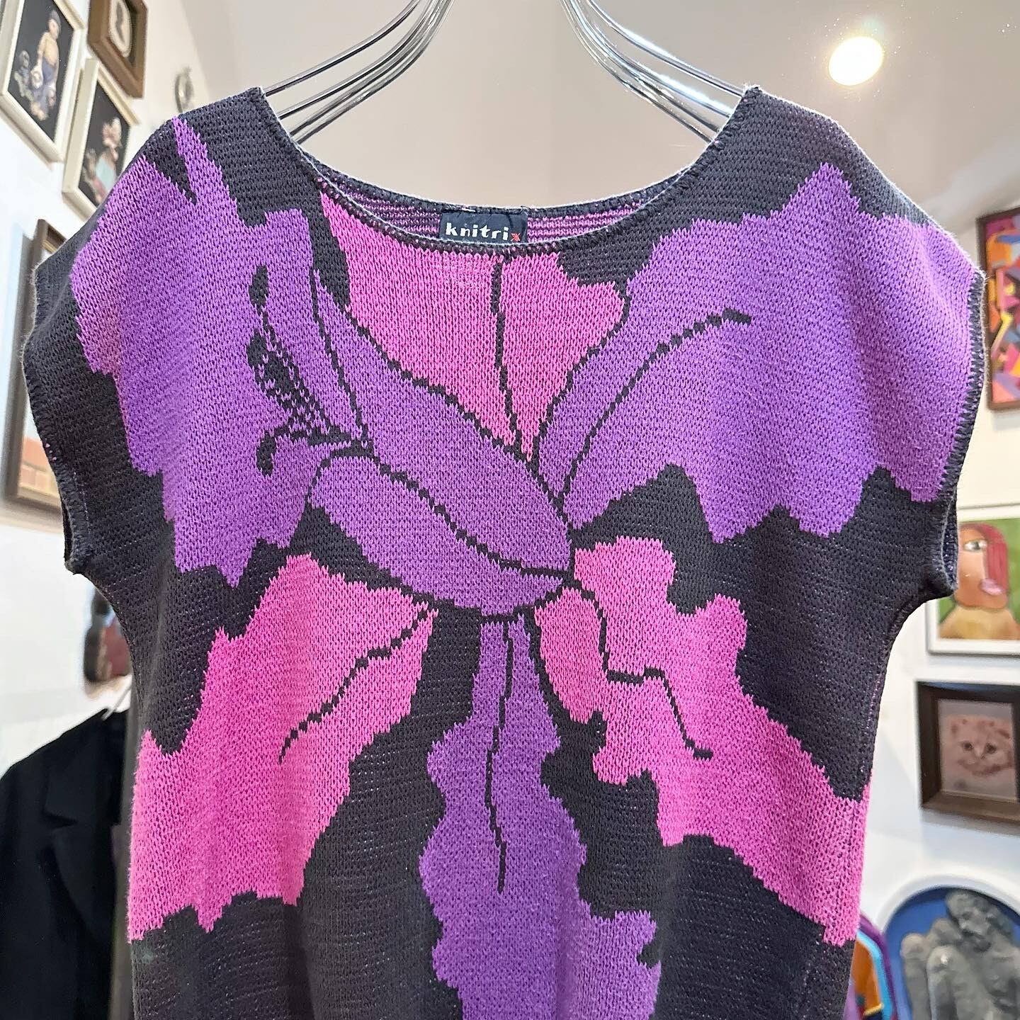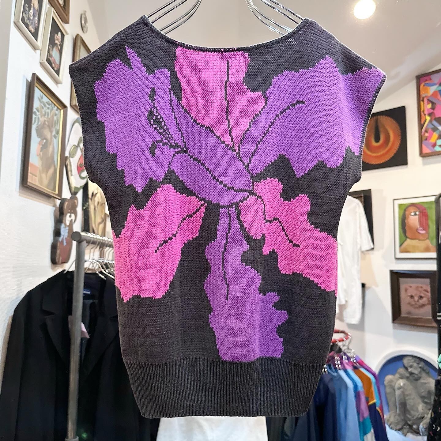 80's Gloriosa Flower Cotton Knit Vest お花 ニットベスト ⭐︎8