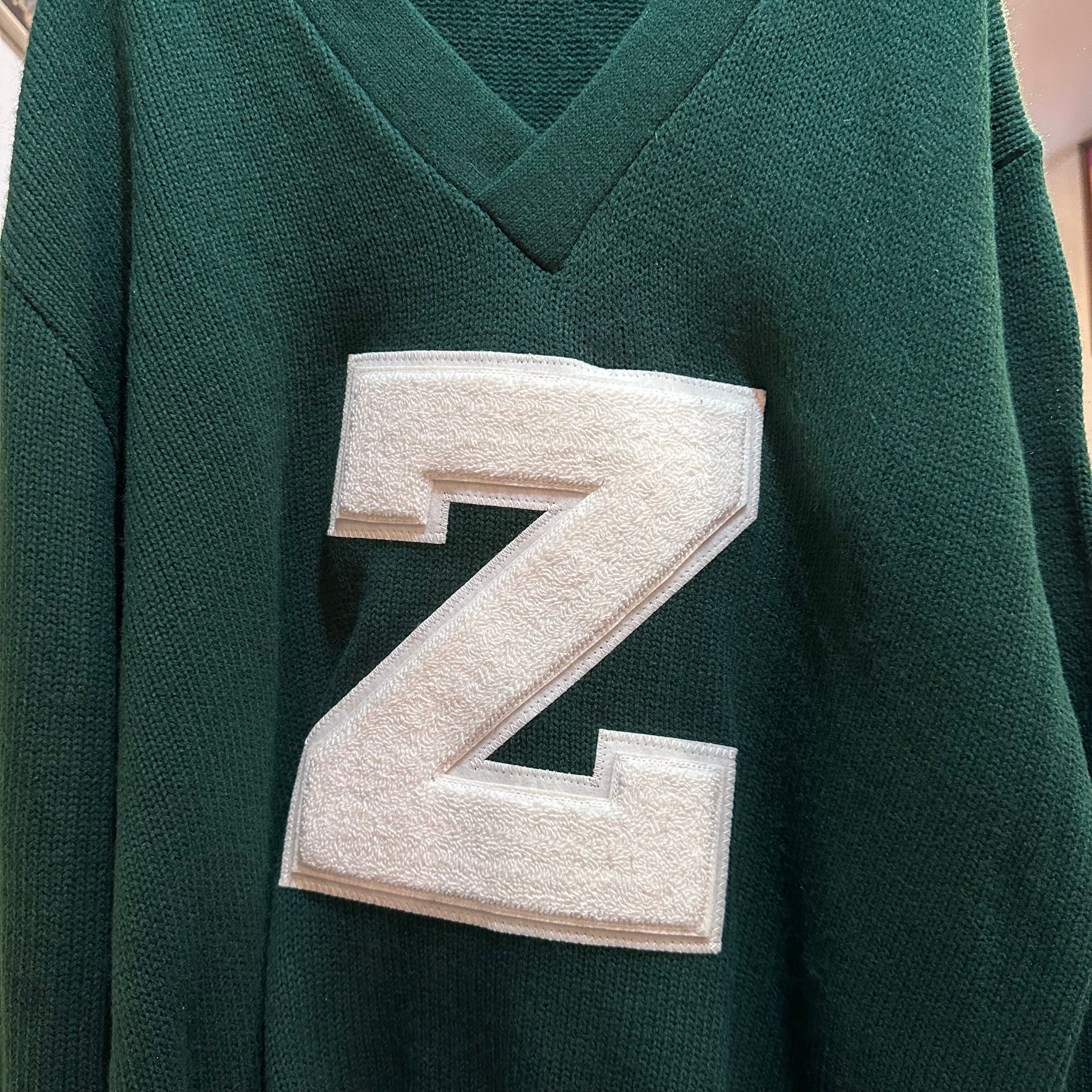 程よいVネックと濃いグリーンとZが可愛いセーターです!