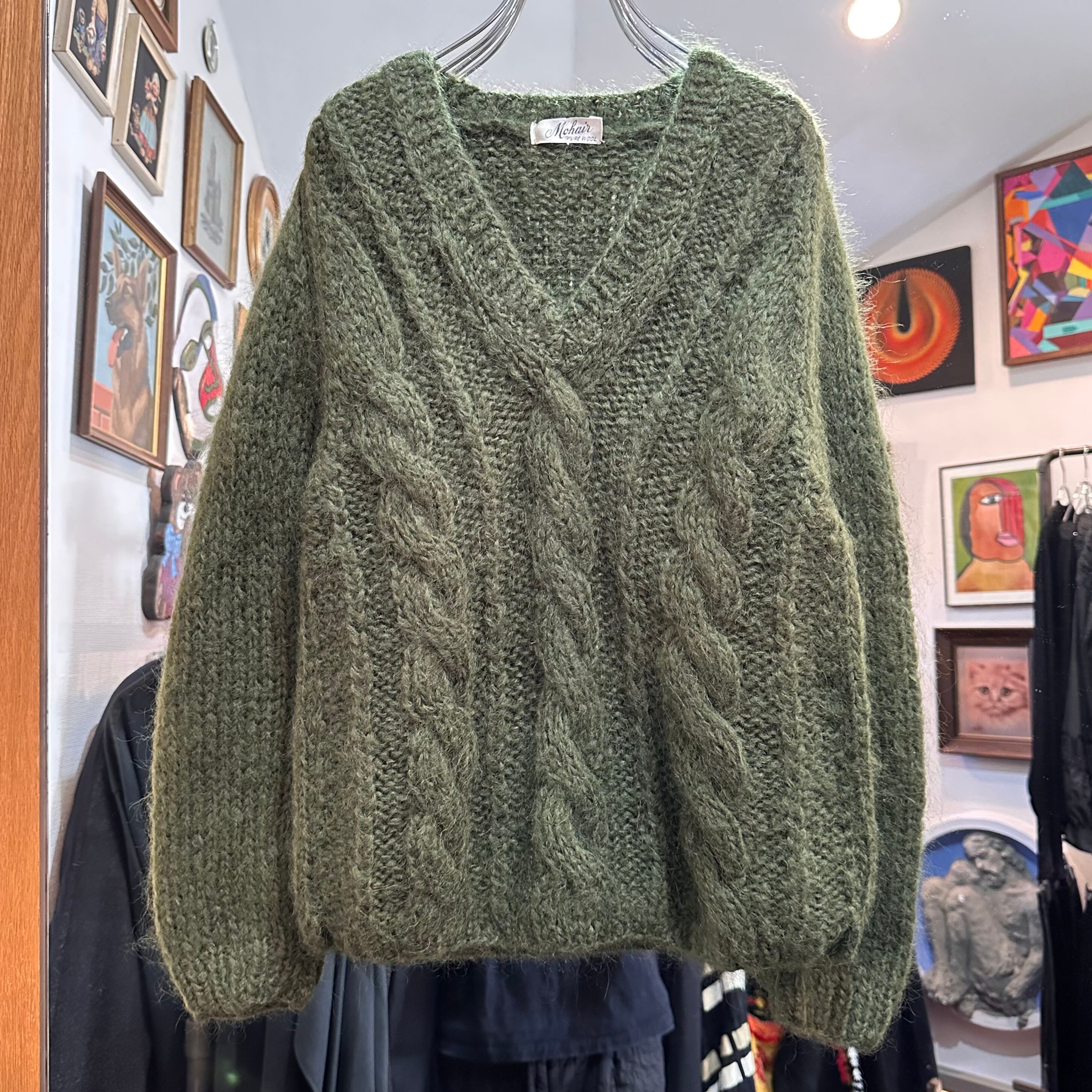 ボックスシルエットのVネックモヘアケーブルニットです!