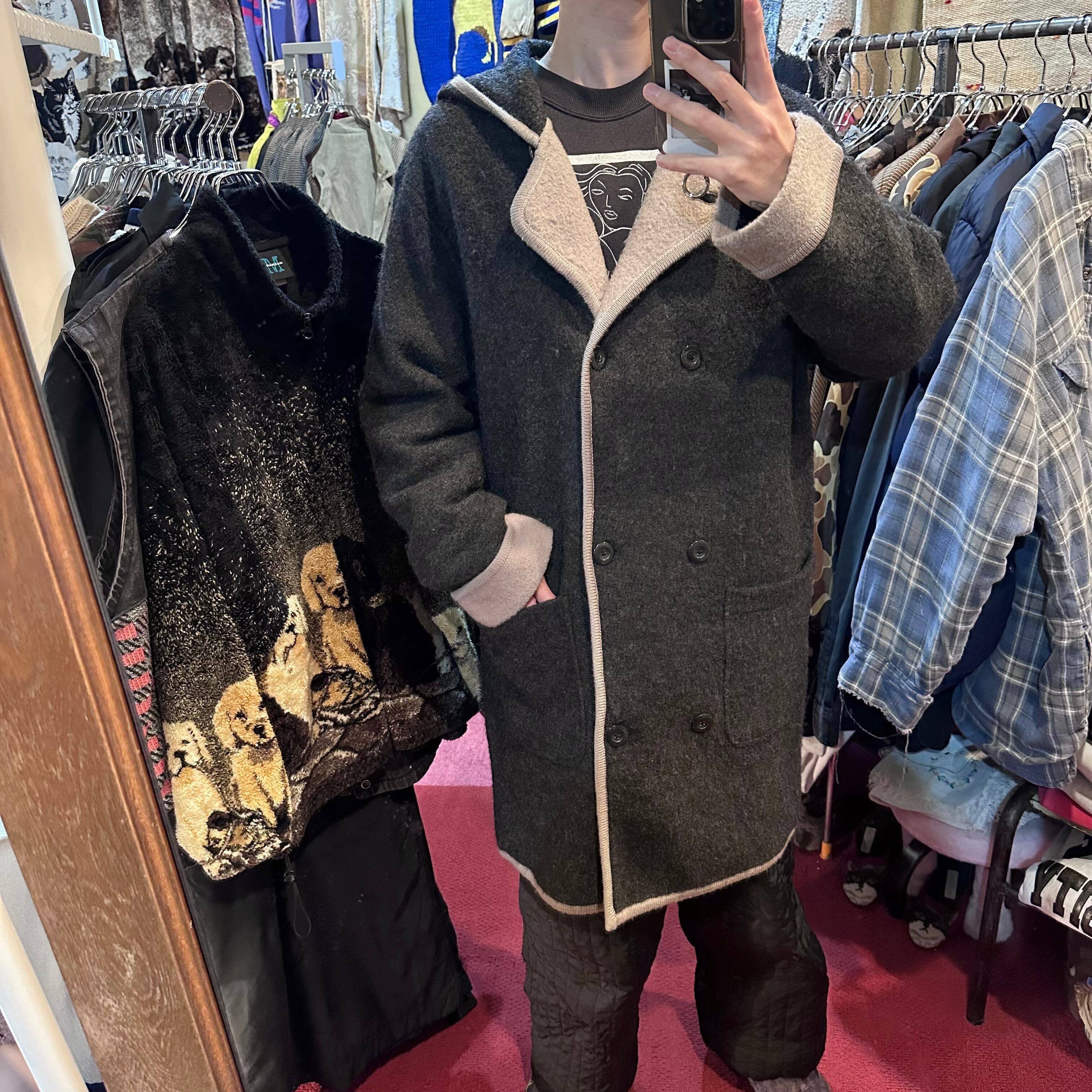開けて着ても閉めて着てもどちらでも可愛いバイカラーウールコートです!
