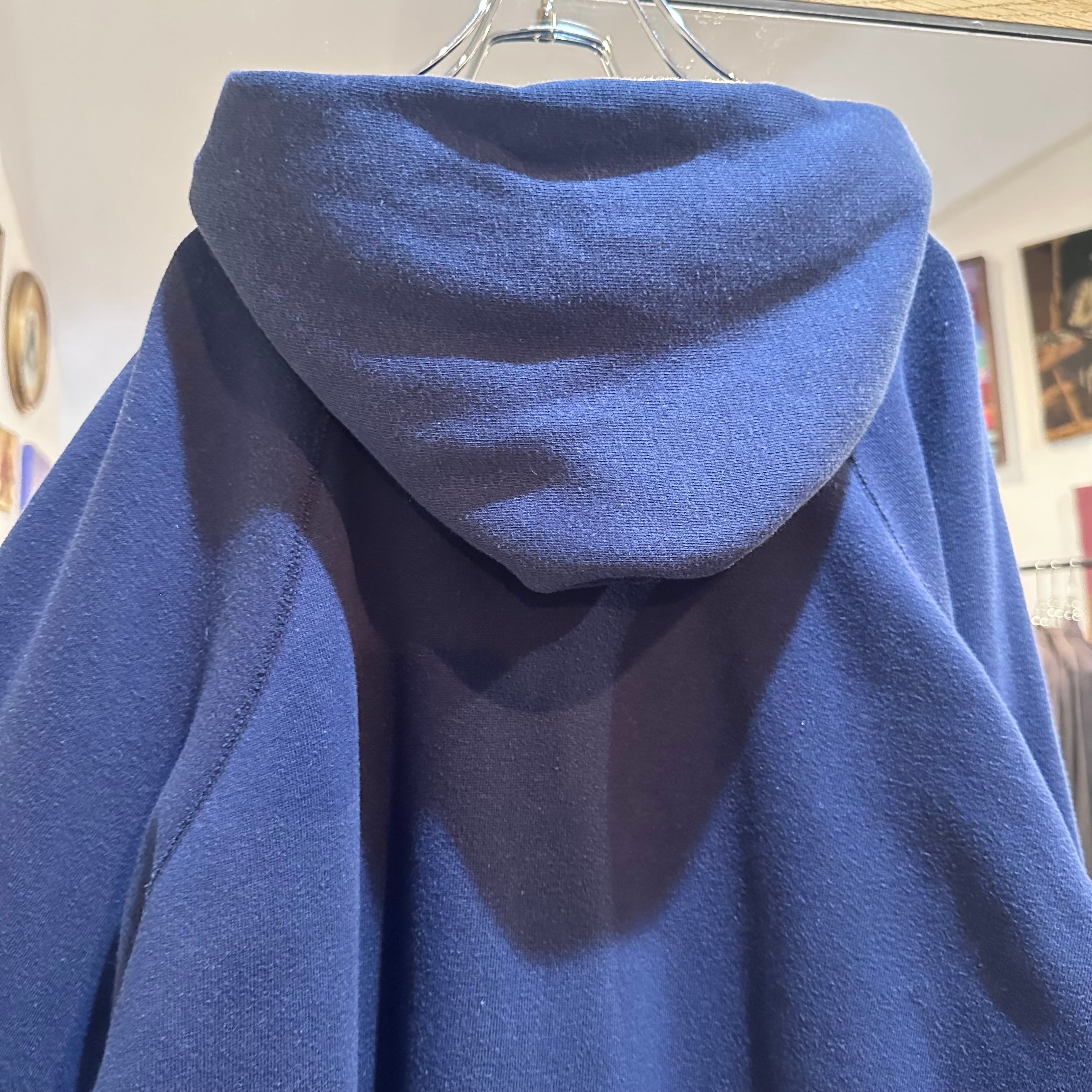 ネイビーカラーのボディに水色のプリントが可愛いカレッジパーカーです!