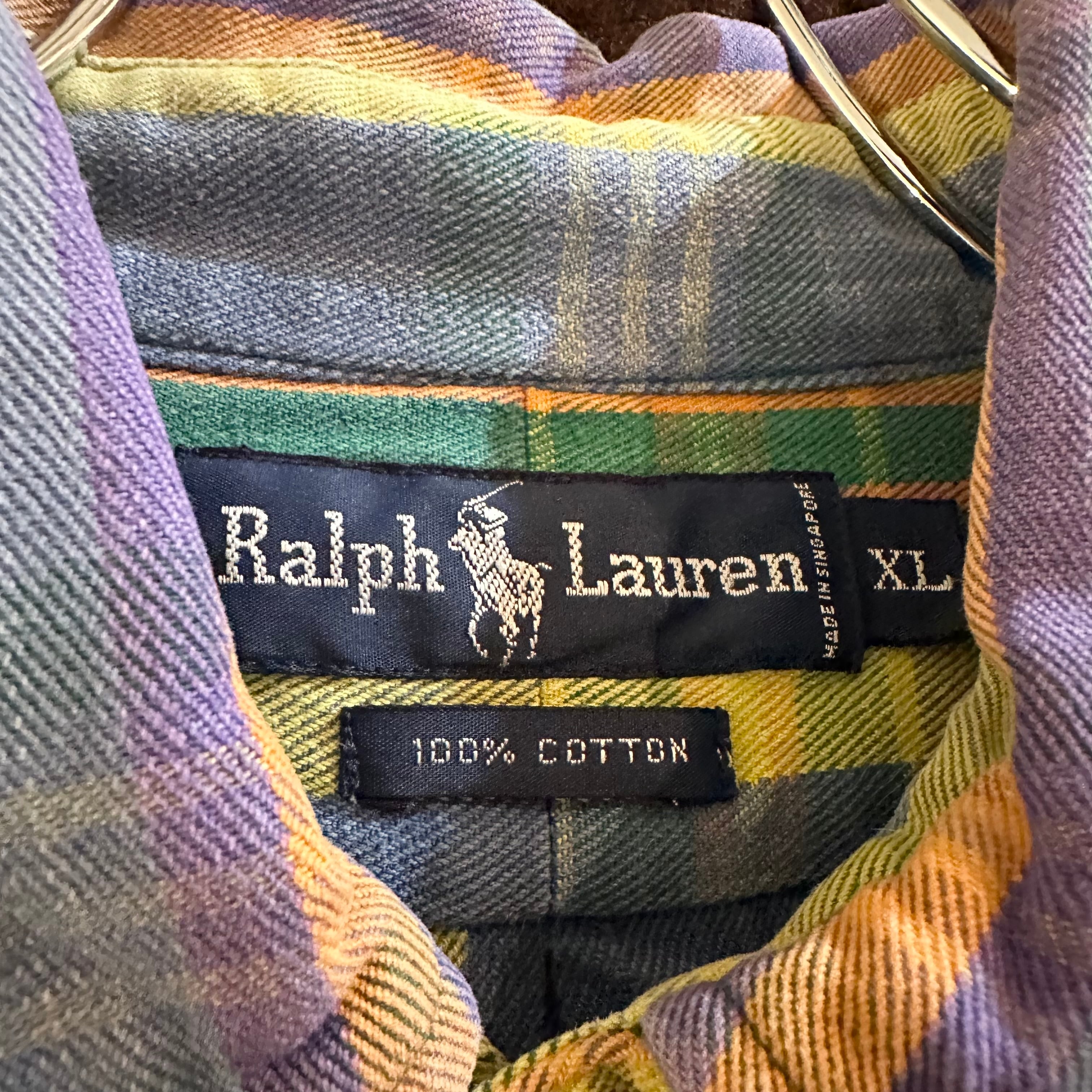 90's ラルフローレン チェック ベビーネル ボタンダウン シャツ ⭐︎5