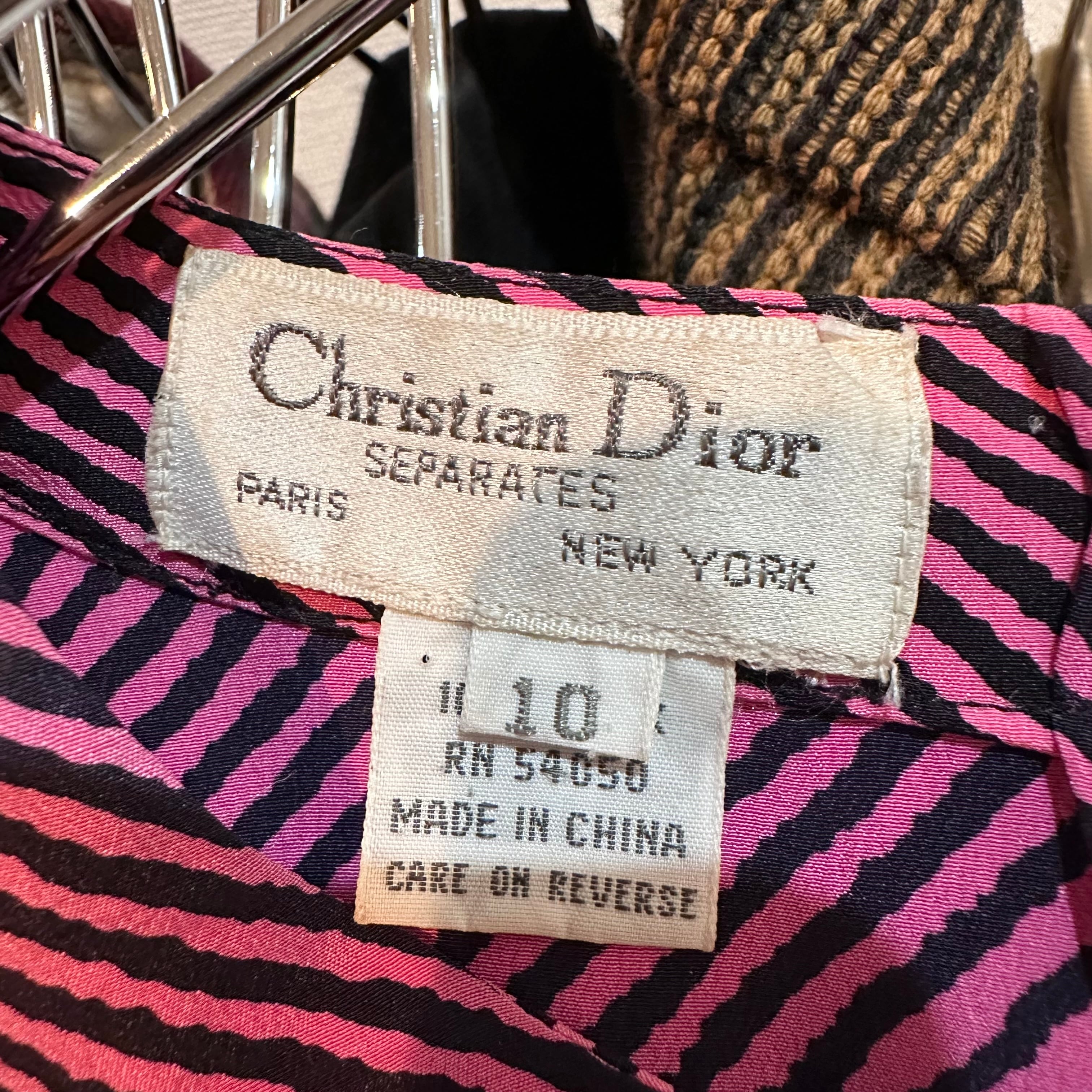 濃いピンクと黒の斜めストライプが可愛い90's Diorのシルクブラウスです!
