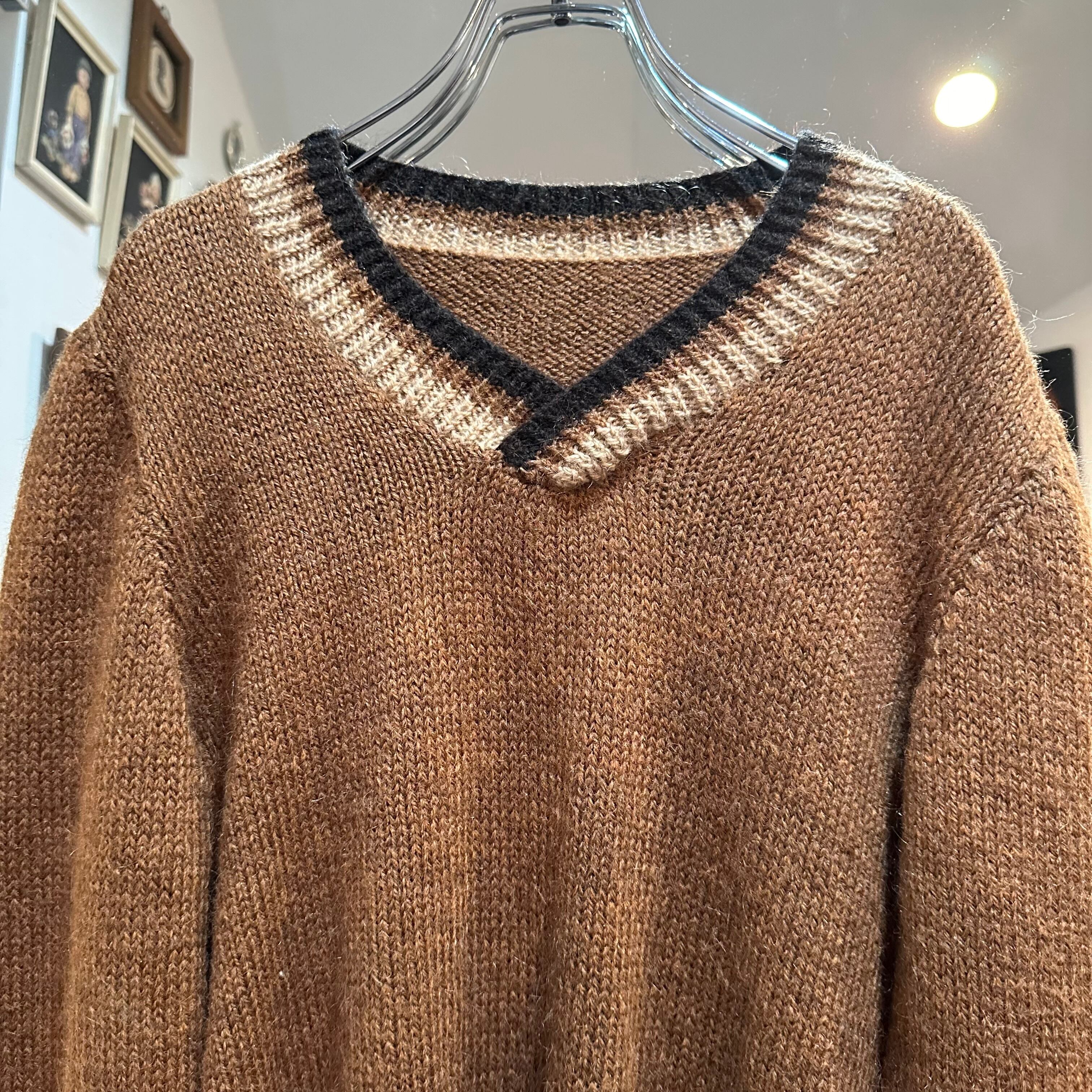 ベージュと濃いブラウンのラインが入った可愛いVネックニットセーターです!